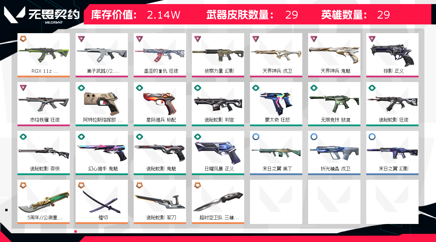 • 武器皮肤数量: 29