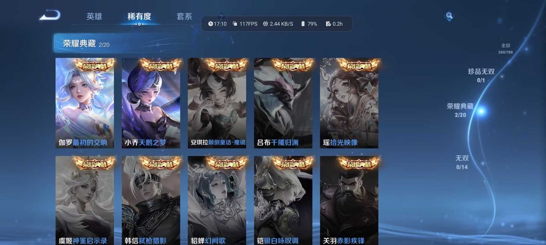【天花板V10】535满皮满典藏/大乔时之奇旅新皮/虞姬星元/白金战甲/个性按键★多星元部件