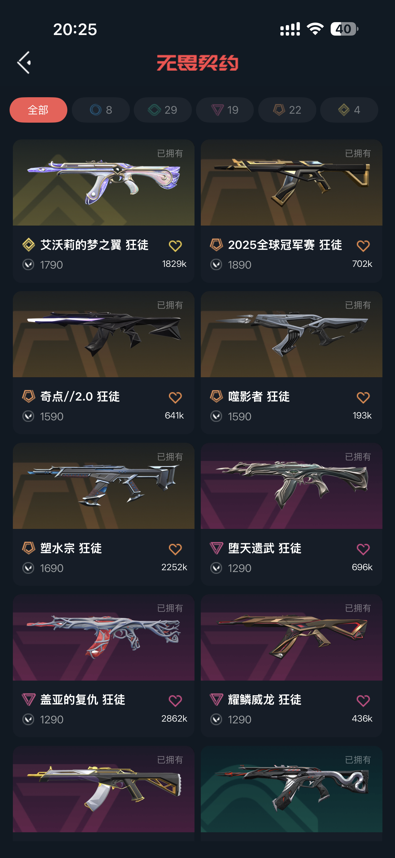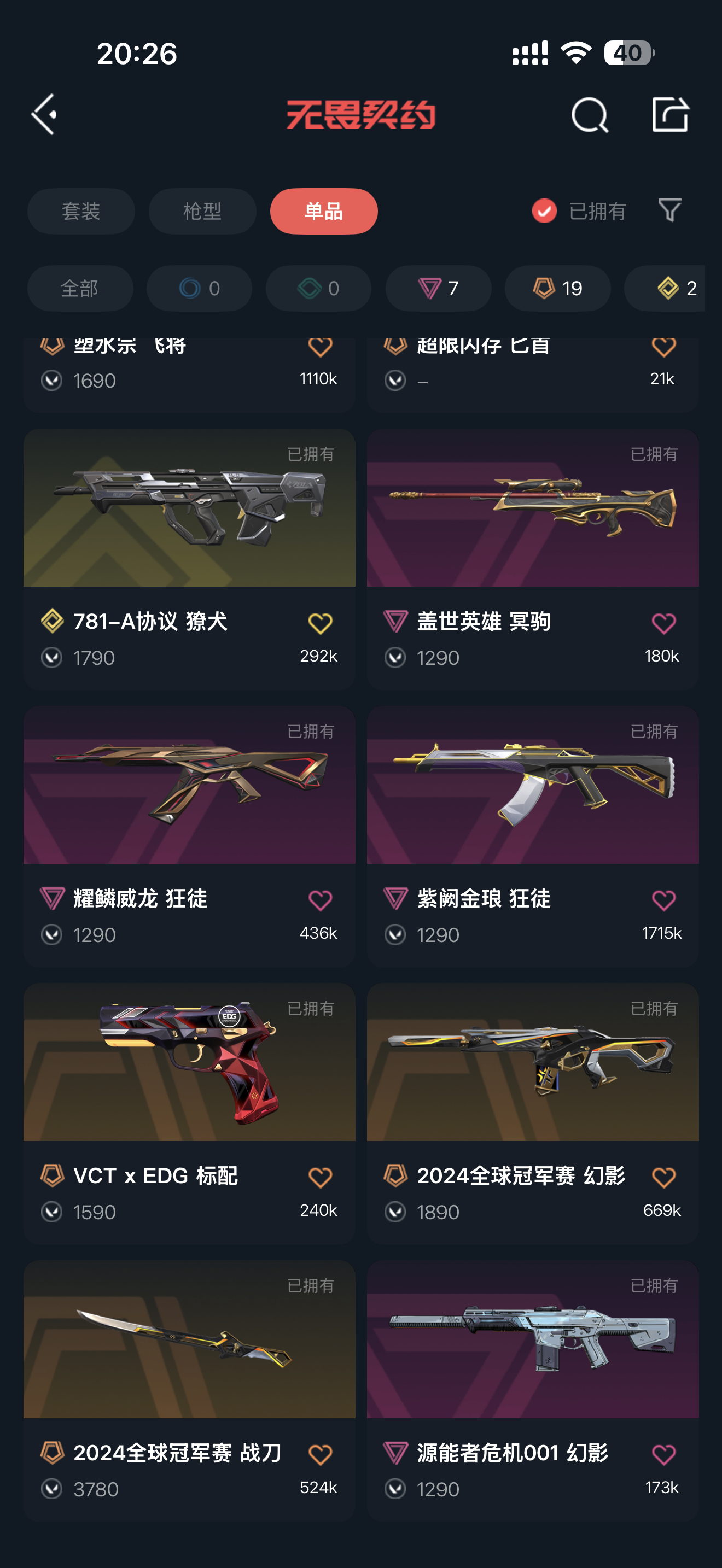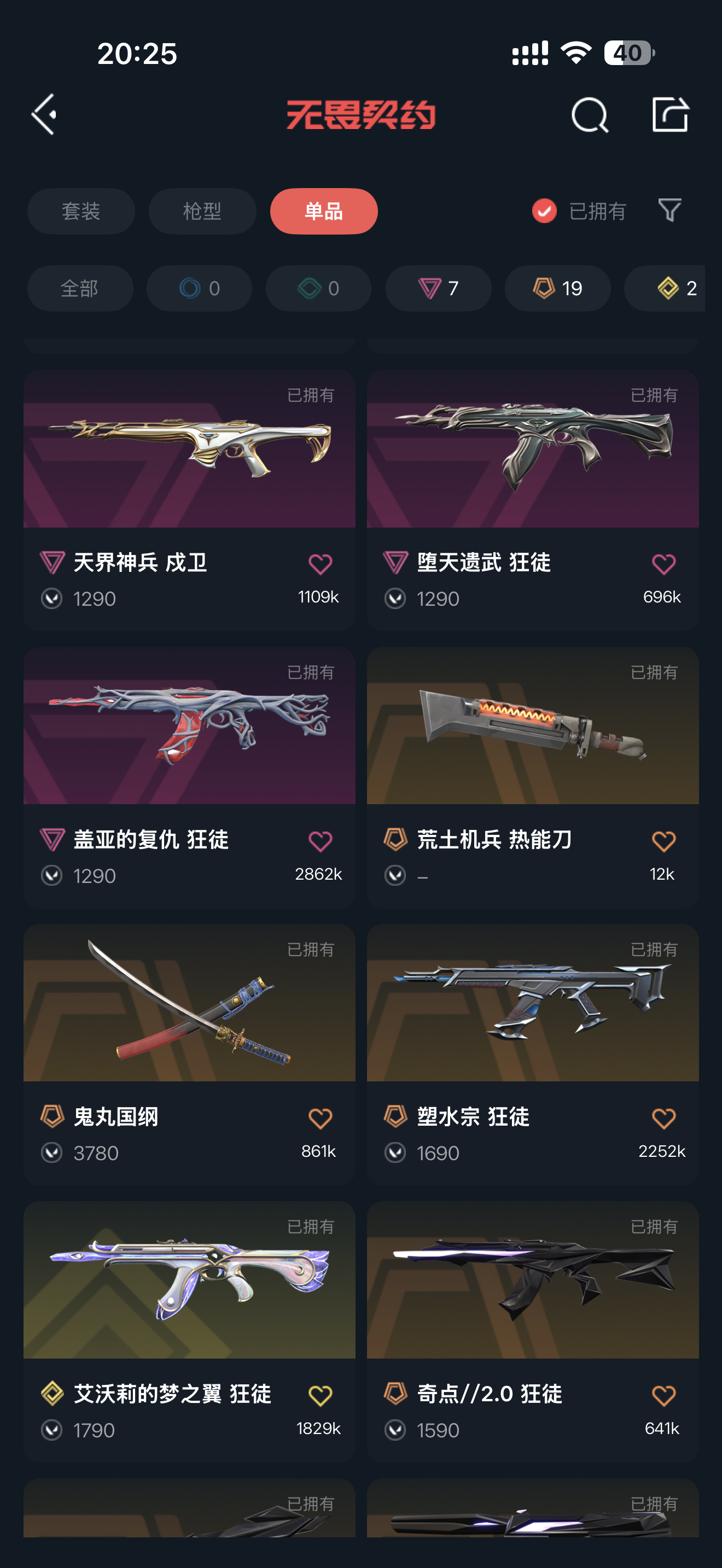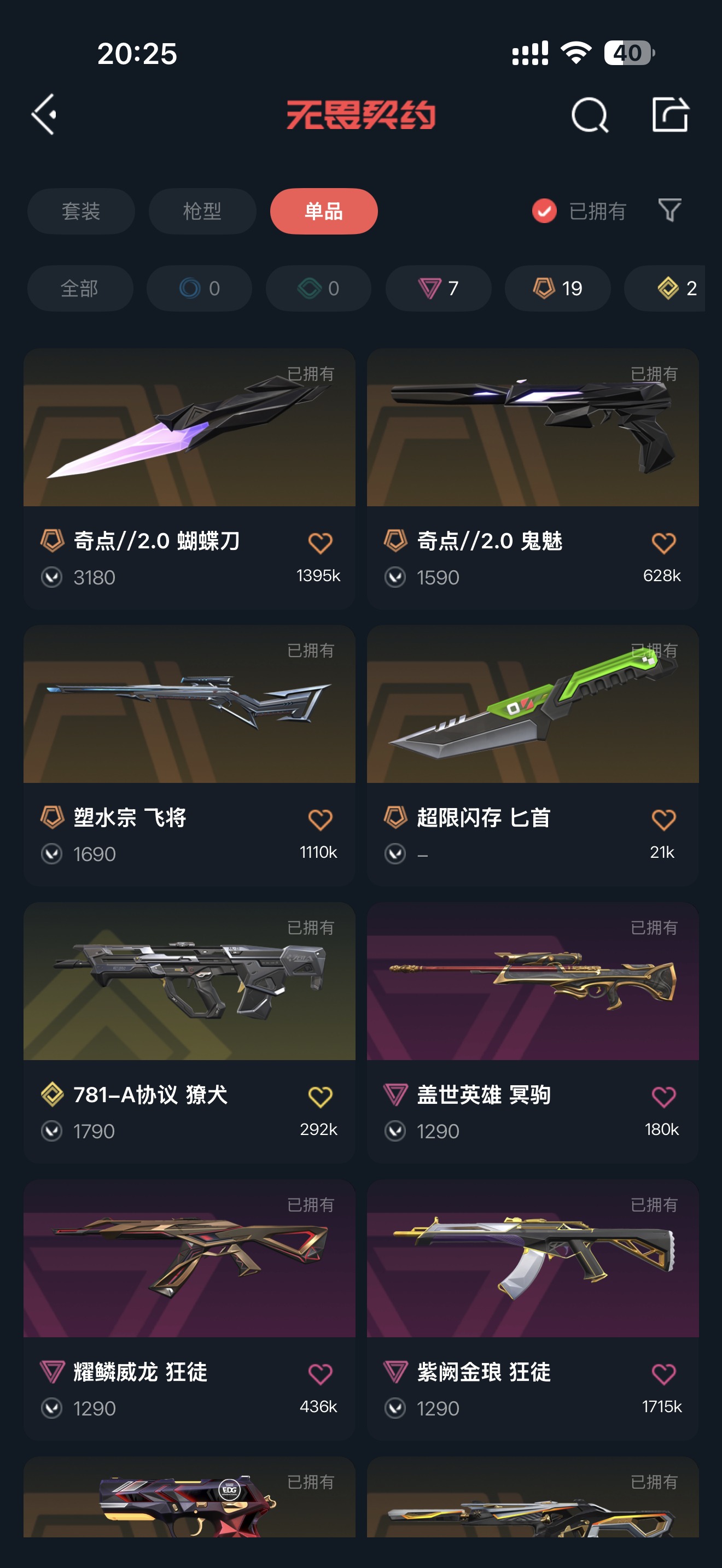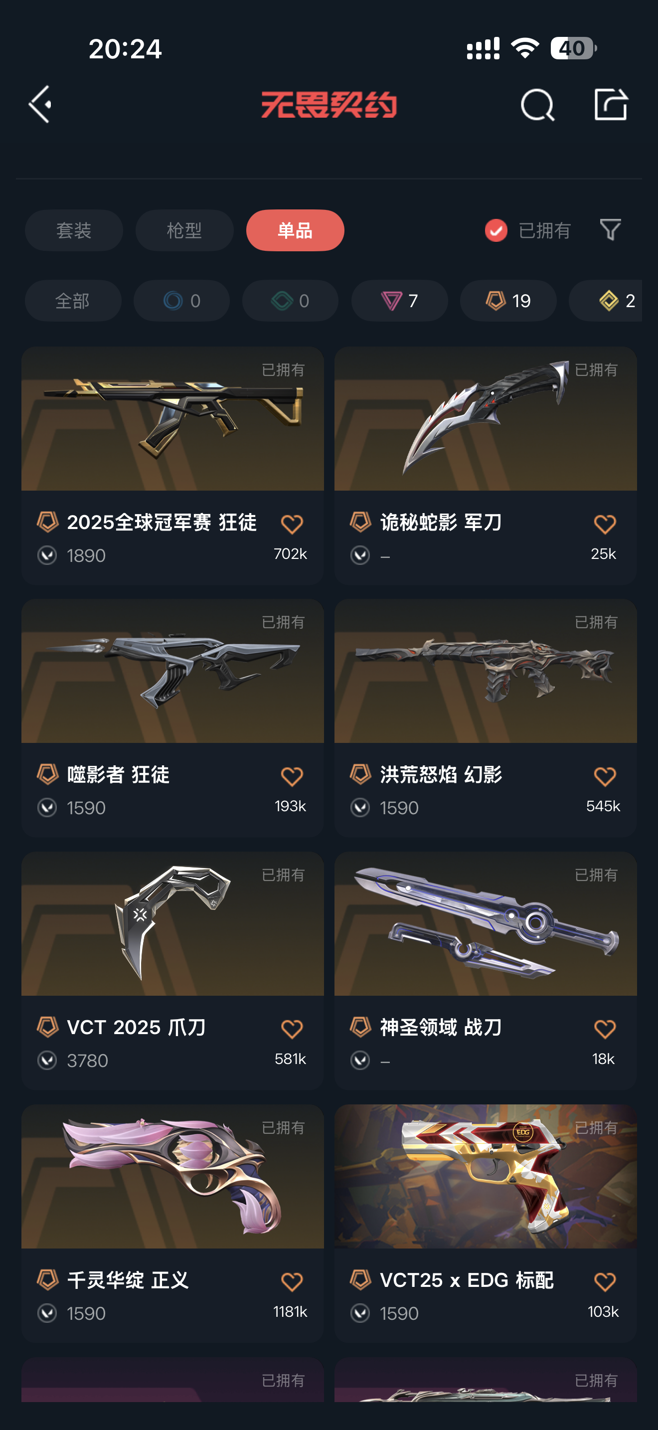 皮肤总价值45420,白银III,总皮肤80,刀皮8枪皮70(终极2传奇11卓越7),套装2(传奇2),2024全球冠军赛套装,猫猫ak,2025冠军ak,盖亚ak,堕天遗武ak,天降神兵戍卫,塑水ak,塑水飞将,奇点蝴蝶刀,洪荒怒焰幻影,EDG标配两把,莲花正义,781獠犬;VCT 2025 爪刀,盖亚的复仇 狂徒,噬影者 狂徒,洪荒怒焰 幻影,紫阙金琅 狂徒,天界神兵 戍卫,堕天遗武 狂徒,