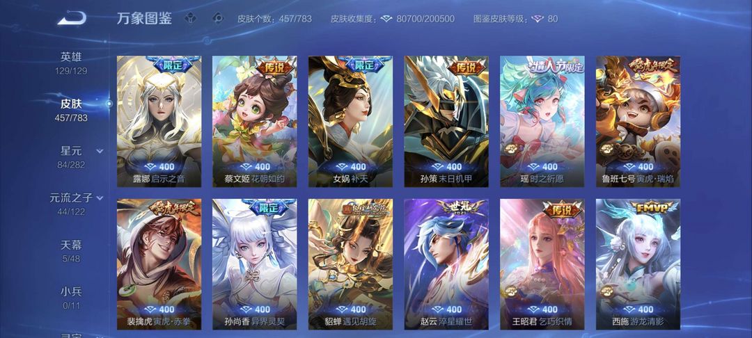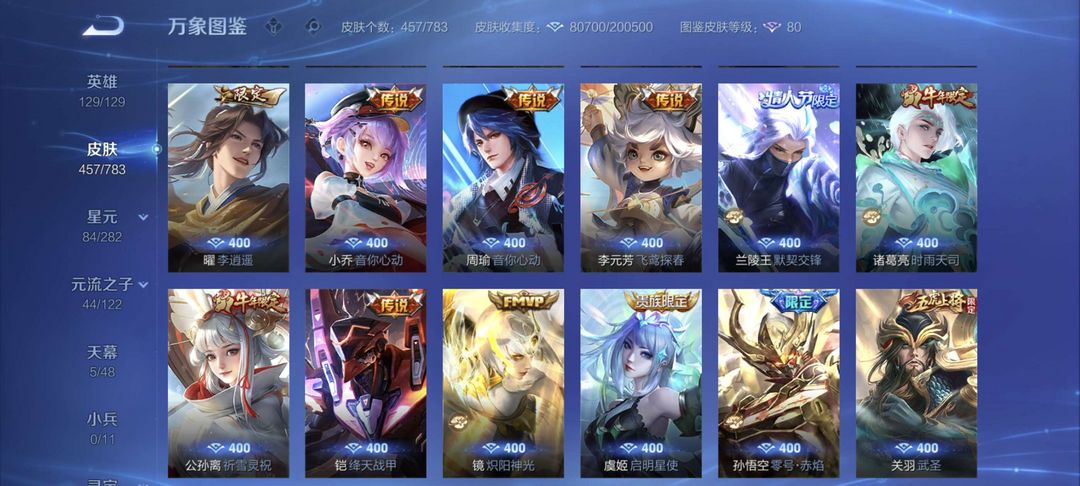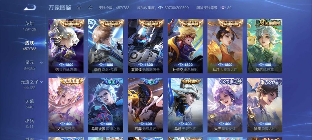 V10、550皮14水、吕布典藏-千魇归渊、云缨-神骥·越千峰、怪盗基德、伽罗星传说红枫、瑶典藏拾光映像、冥王哈迪斯、、龙年限定、齐天大圣