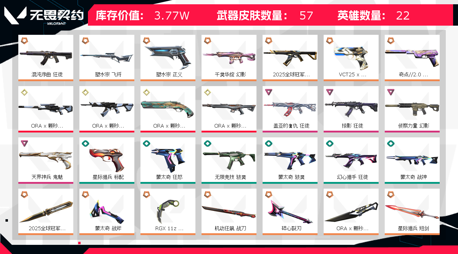 • 皮肤资产价值: 37670