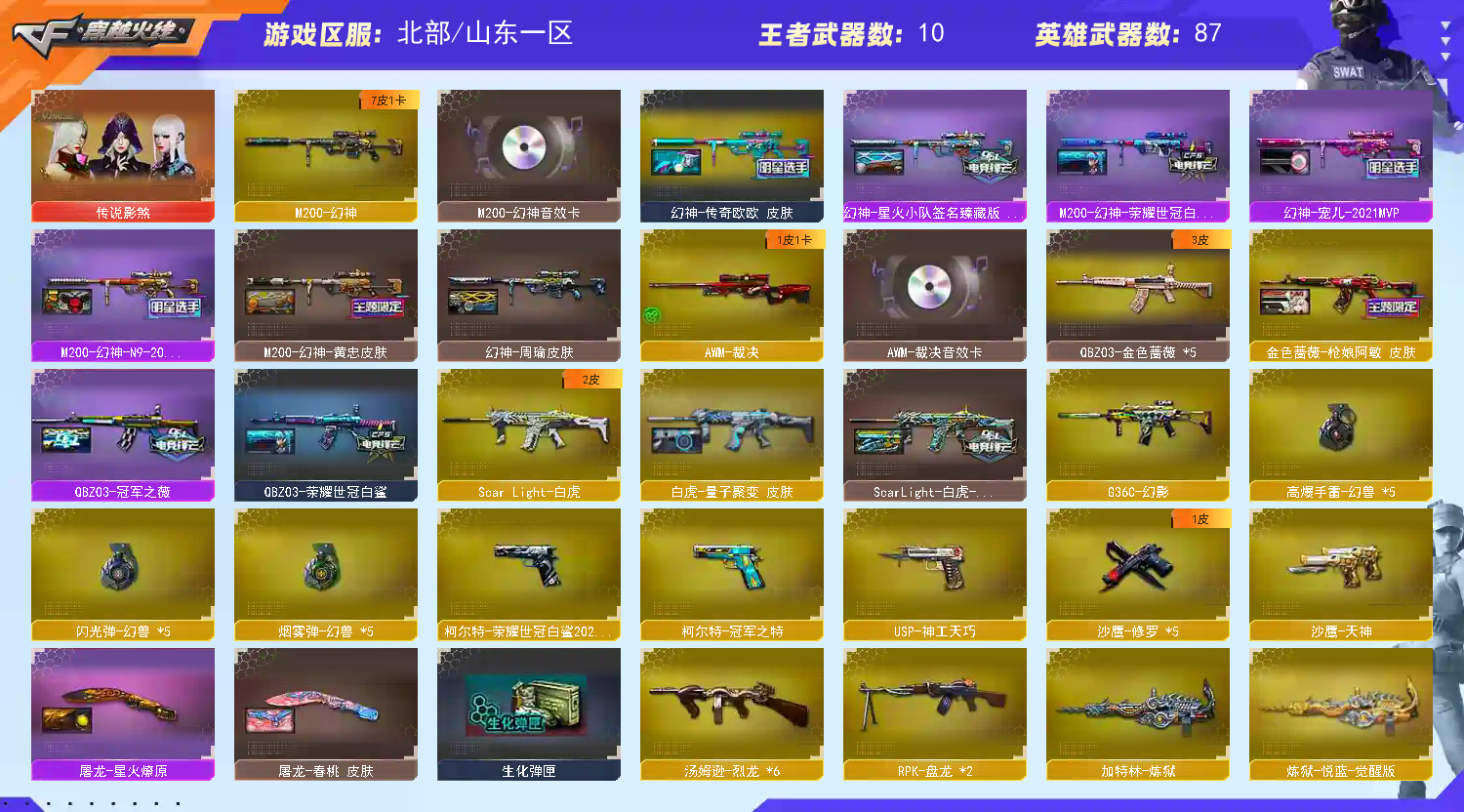 传说影煞幻神欧欧⑦皮音效卡裁决套王者星神幻影冠特白鲨特usp幻兽X5;柯尔特-荣耀世冠白鲨2023,柯尔特-冠军之特,传说影煞,RPK-盘龙,QBZ03-金色蔷薇,G36C-幻影,M200-幻神,