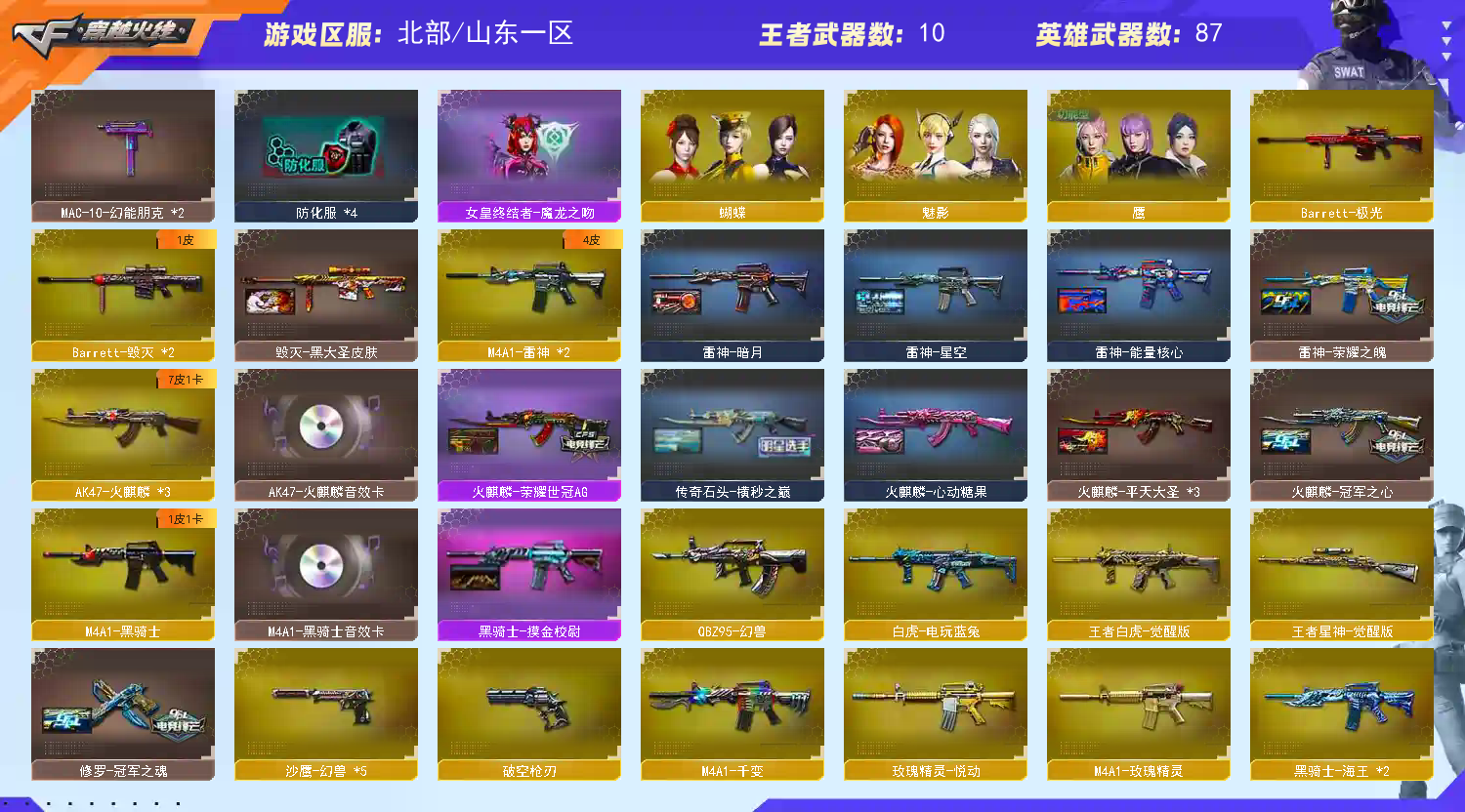 • 游戏区服:穿越火线 / 北部 / 山东一区