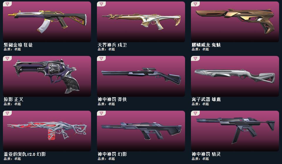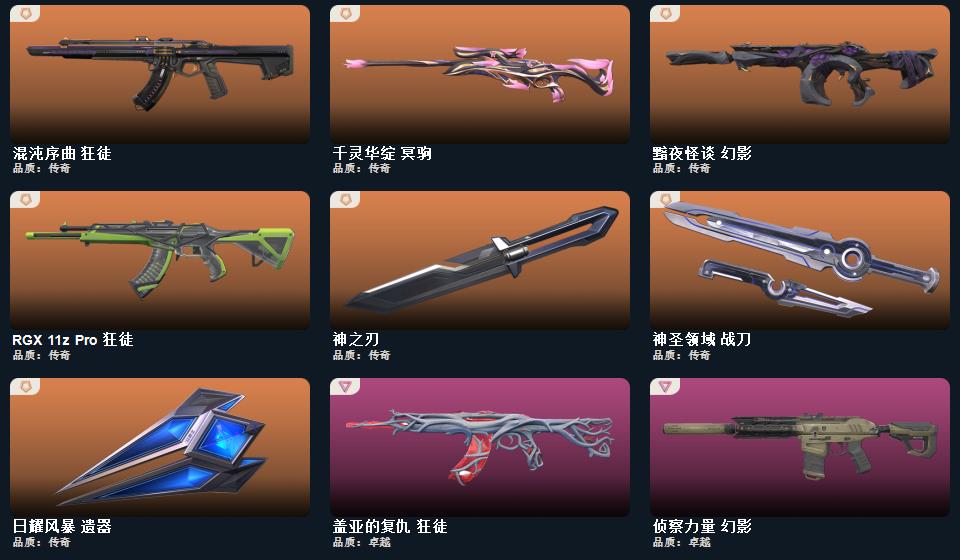 神中神罚套装,日耀风暴 遗器,神之刃,神圣领域 战刀,蒙太奇 狂怒,日耀风暴 骇灵,离子武器 雄鹿,盖亚的复仇//2.0 幻影,幻语魔咒 飞将,日耀风暴 奥丁