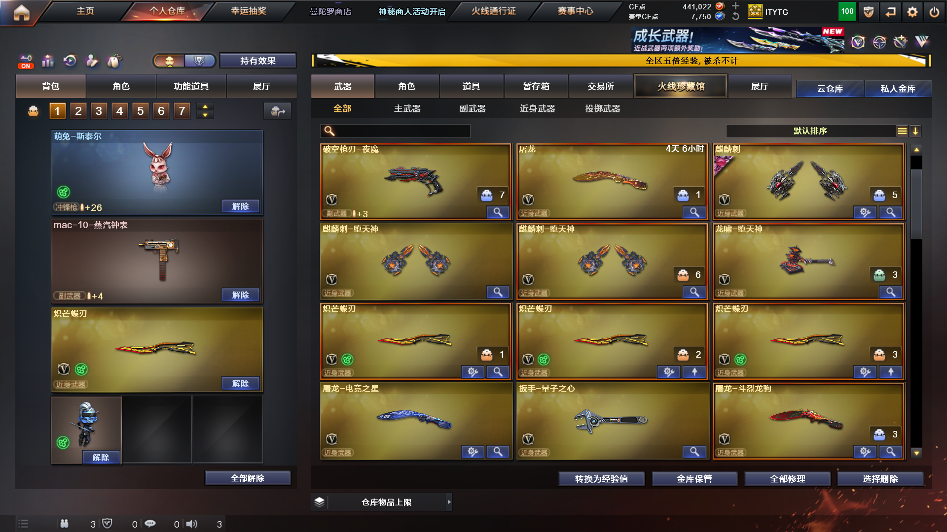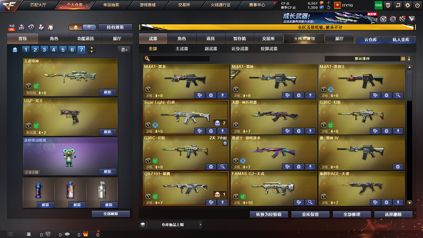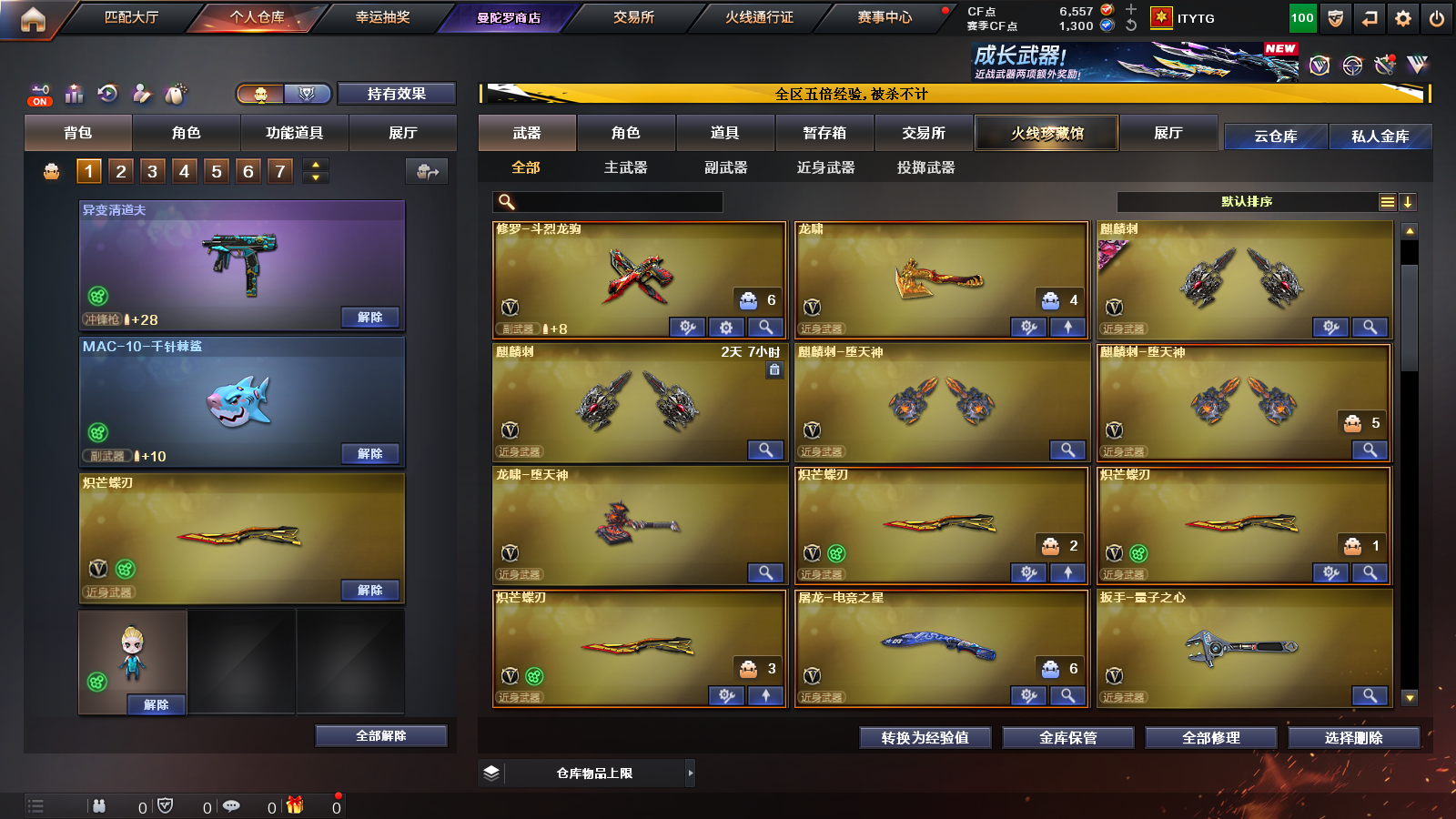 爆破号|生化号|神威莲华|幻神周瑜|6烈龙|加利尔天袭|法玛斯天戎|幻影G36|黄金猫猫手套白鲨|炼狱祈雨狮|斯泰尔萌兔|4盘龙|破空枪刃夜魔|白虎|白虎电玩蓝兔|扳手量子之心|天罚|斗烈龙驹|炽渊之怒王者大炮|堕天神麒麟刺|堕天神龙啸|麒麟刺|救世主小人枪|usp冥王|王者炎武|玄武|龙啸|王者沧神|异变清道夫|幻神权|3把蝴蝶刀炽芒蝶刃|裁决|巴雷特金色蔷薇|传说角色 不要开挂 不要开挂 不要开挂 不要开挂;炽芒蝶刃,隼,RPK-盘龙,G36C-幻影,M200-幻神,Scar Light-白虎,加利尔ACE-天袭,