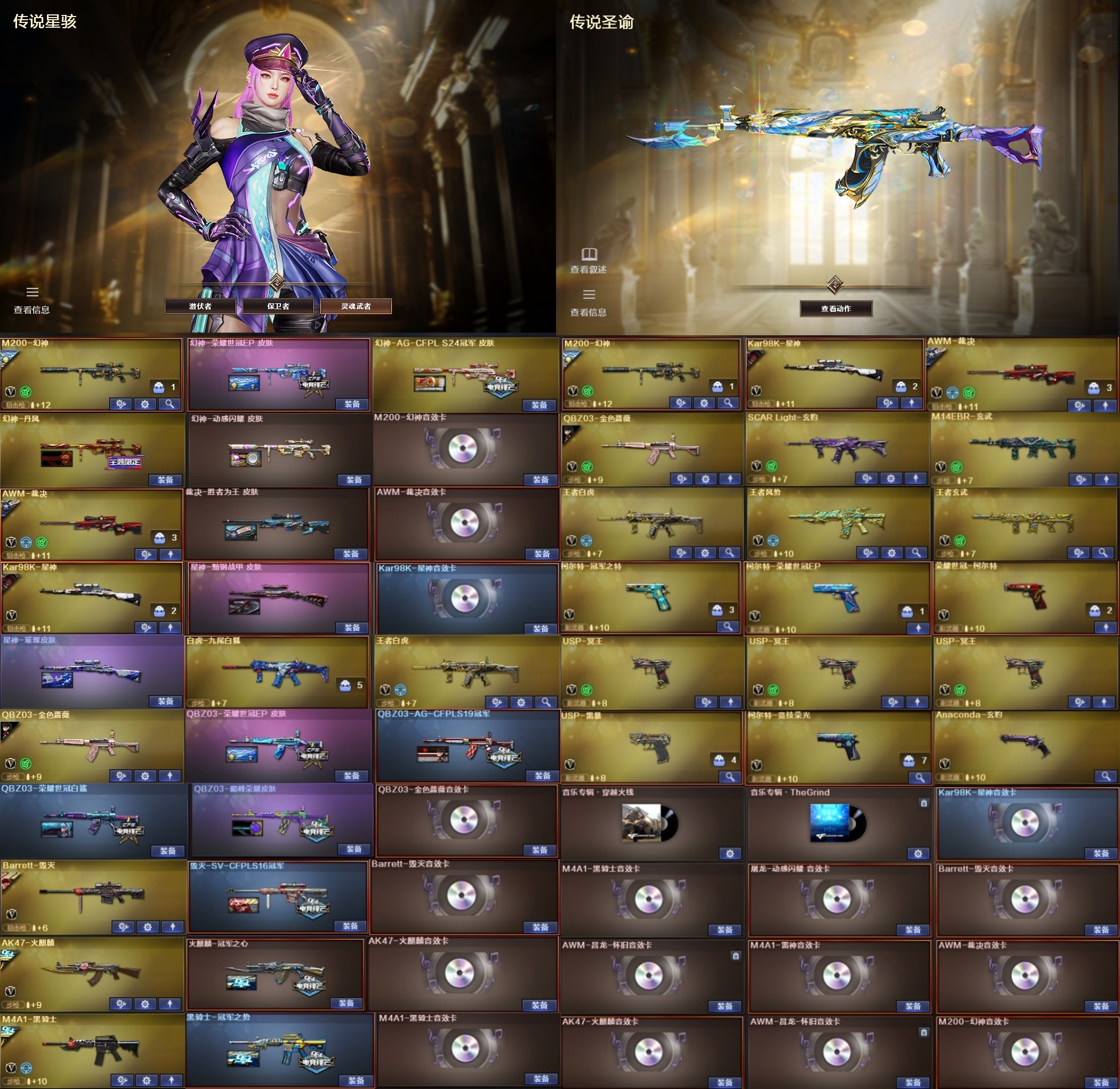 枪王4/8号【北部】传说星骇+圣域⭐幻神EP5皮+音⭐裁决套⭐星神套⭐白虎+蔷薇套⭐冥王雷暴冠特*4