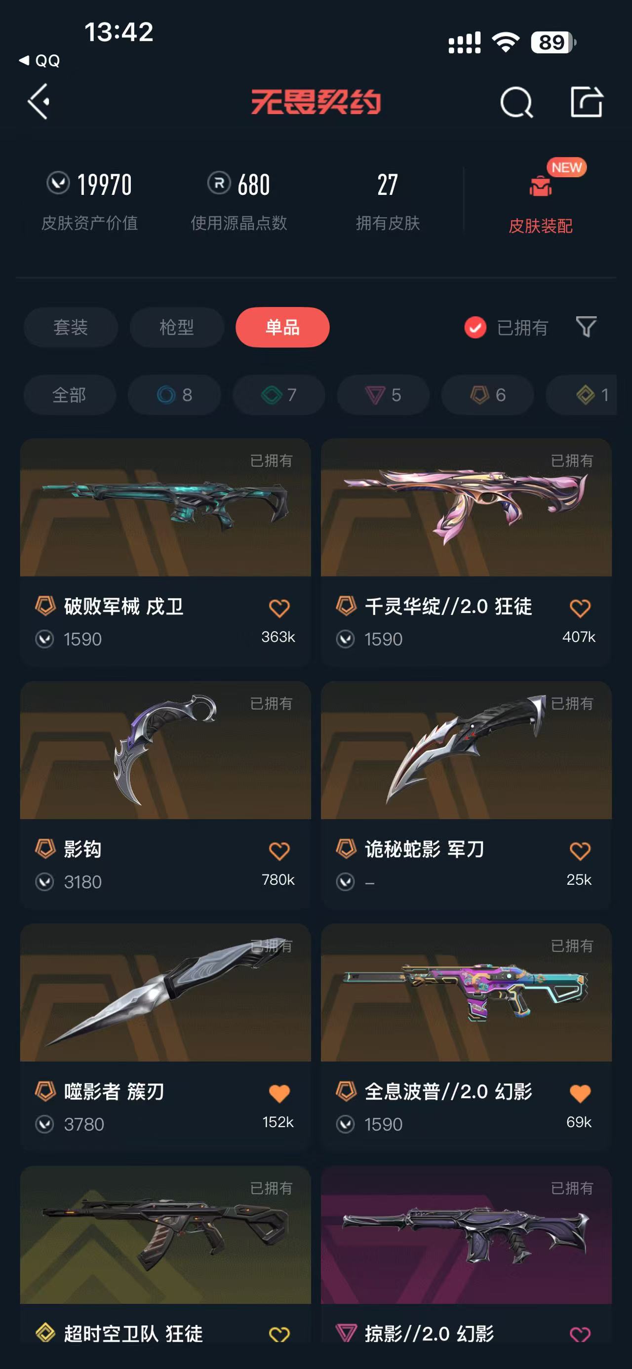 • 皮肤资产价值: 19970