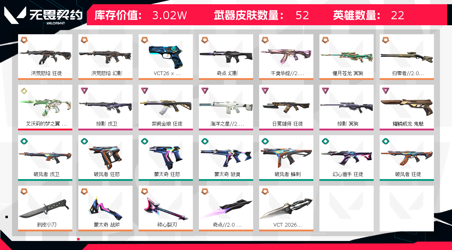 首页 > 租号大厅 > 无畏契约-wegame > wegame/wegame > 两万精品库存⭐️26VCT篆刀星守骇灵丨流脓幻影千灵华绽狂徒丨奇点蝴蝶刀