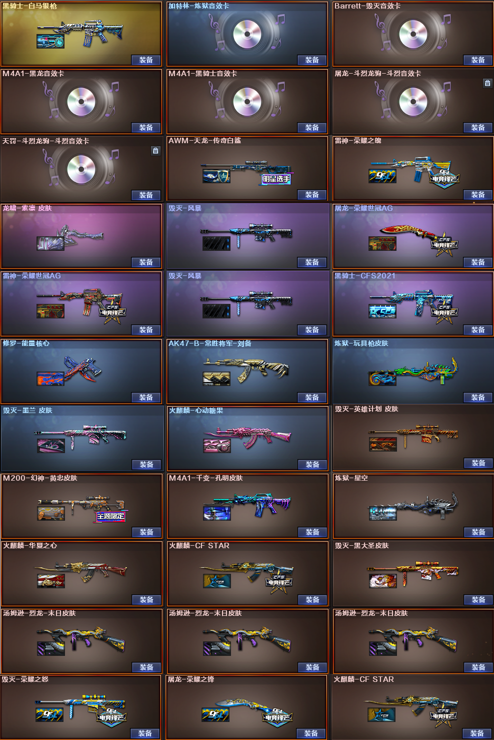 诸位,此账号是专门为生化和挑战玩家做支持,对连杀判定比较在意的,此账号戒指属性和枪械都刷成最高状态,诸位玩的开心,后期还会持续更新装备,多谢 稀有武器:M200幻神、炽芒蝶刃、烈龙X7+蝴蝶、盘龙X6+炼狱X2、白虎X2、HK朱雀、QBZ金色蔷薇X2、M4夜魔、Barretter电竞装甲、千变、火麒麟X3、黑龙、雷神X4、黑骑士X7、黑武士、白虎电玩蓝兔、天启、超新星X2、黑鲨、龙血X4、无影神兵利器、天罚斗烈龙驹、猎神、烈火动感闪耀、黑骑士海王X2、天龙、毁灭X2、极光、裁决、荣耀世冠火麒麟、荣耀世冠雷神、修罗X2、天神X5、USP雷暴、破空枪刃夜魔、柯尔特电竞装甲、天神动感闪耀、荣耀世冠柯尔特、屠龙X4、龙啸X2、擎天、麒麟刺X3、斩神刀雷暴、马来剑夜魔、尼泊尔电竞装甲、屠龙动感闪耀、屠龙斗烈龙驹、荣耀世冠龙啸、 稀有角色:沙漠玫瑰(移速提升/捕食者之眼/佣兵觉醒/生化背包变更)、春、葵、零、凌霄(减少掉落伤害/减少闪光效果/免疫队友炸弹伤害/副武器自动装弹)、审判者、瞳、樱、魅影、斗烈龙驹、乔伊教练、王者葵貂蝉(四防)、王者魅影(四防)、修道士、暗夜X、奥摩X、白狼X、刀锋X 音效卡:黑龙音效卡、炼狱音效卡、毁灭音效卡、黑骑士音效卡、屠龙斗烈龙驹斗烈音效卡、天罚烈龙驹斗烈音效卡 稀有皮肤:M200幻神黄忠皮肤、黑骑士白马银枪皮肤/CFS2021皮肤、龙啸紫凛皮肤、毁灭风暴皮肤/黑大圣皮肤/荣耀之怒皮肤/墨兰皮肤/英雄计划皮肤、屠龙荣耀世冠AG皮肤/荣耀之锋皮肤、雷神荣耀世冠AG皮肤/荣耀之魄皮肤、修罗能量核心皮肤、炼狱玩具枪皮肤/星空皮肤、火麒麟心动糖果皮肤/CFSTAR皮肤/华夏之心皮肤、烈龙末日皮肤、千变孔明皮肤 王者武器:王者之魄、王者之怒、王者之决、烈龙悦心、王者之锋、王者龙啸、王者之击X3 小人枪及特殊武器:M4A1雷神精英刀锋、火麒麟灵狐、毁灭孙三炮、炼狱酷酷小狮、炼狱迷你小钢、暴君乱世超越MAX、毁灭征服者超越MAX、机甲撕裂者、圣炎切割者、金魔、阐释者X3、斯泰尔蝴蝶、巴雷特赏金猎人、M37葵、猫猫手套 投掷武器及套装:雷暴套X4、夜魔套X7、电竞装甲套X7、手雷动感闪耀、烟雾弹幻灵;USP-雷暴,荣耀世冠-柯尔特,炽芒蝶刃,沙漠玫瑰,RPK-盘龙,QBZ03-金色蔷薇,M200-幻神,