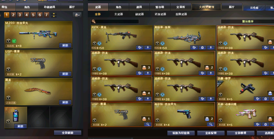 宗师段位炸鱼号·竞技荣光全套,云悠悠4防,80v,usp雷暴,六烈龙六盘龙。;USP-雷暴,电竞教官-云悠悠,RPK-盘龙,QBZ03-金色蔷薇,