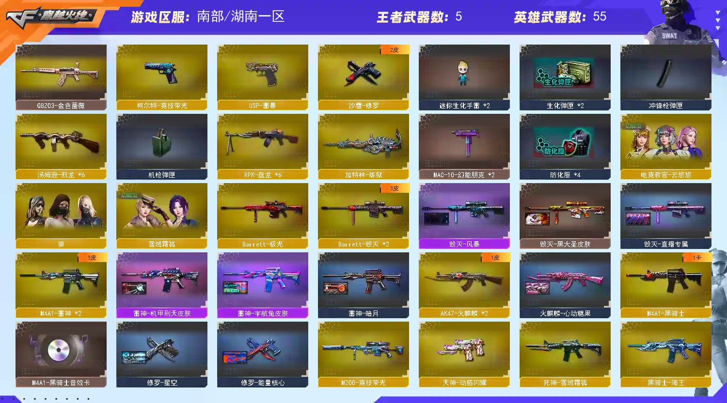 • 游戏区服:穿越火线 / 南部 / 湖南一区
