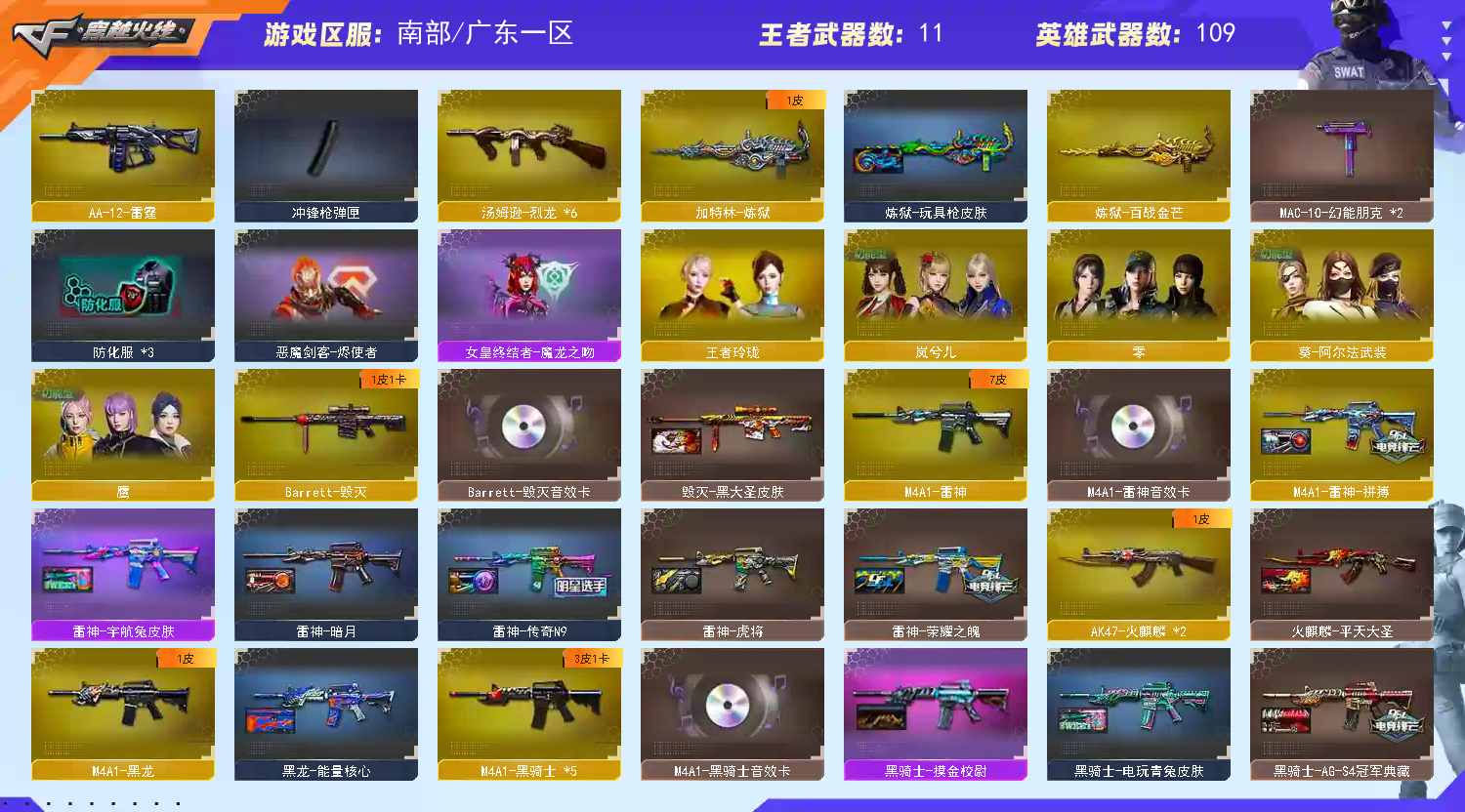• 游戏区服:穿越火线 / 南部 / 广东一区