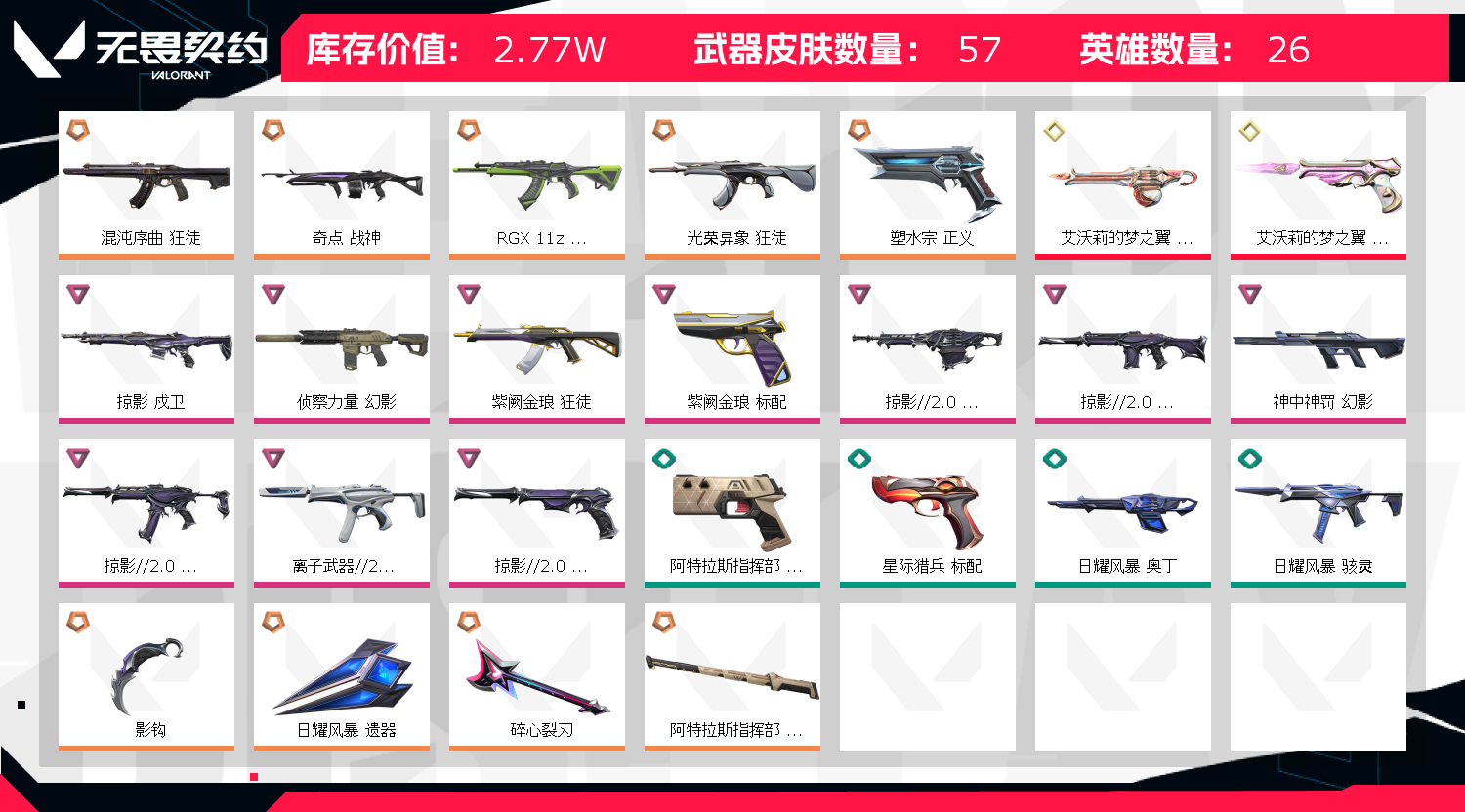 • 皮肤资产价值: 27710