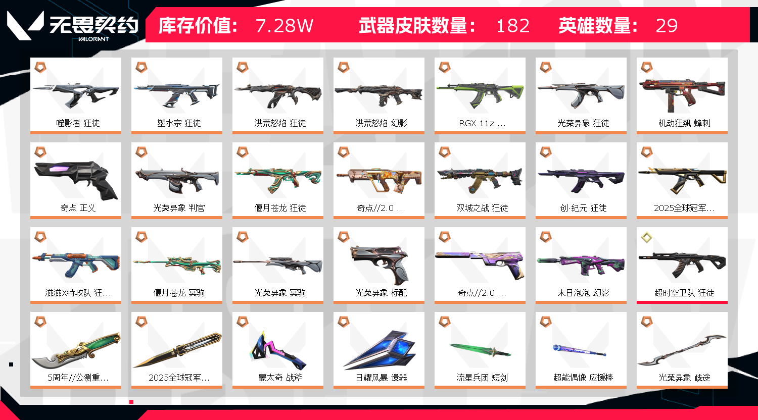 • 武器皮肤数量: 182