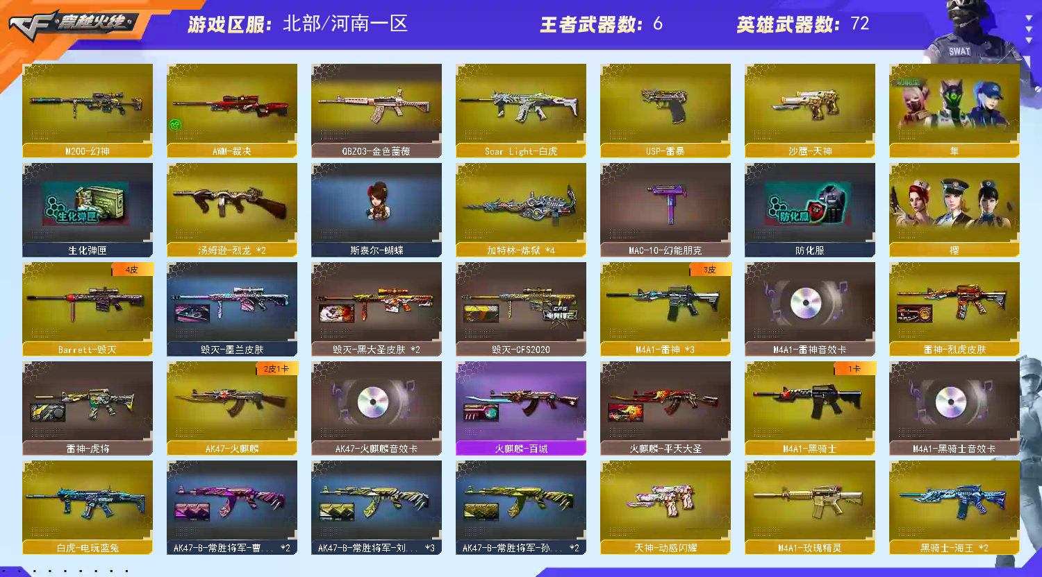 M200-幻神音效卡生化斯泰尔蝴蝶4炼狱隼⭐白虎朱雀USP雷暴幻灵QBZ⭐白鲨AG虎将黑大圣烈虎