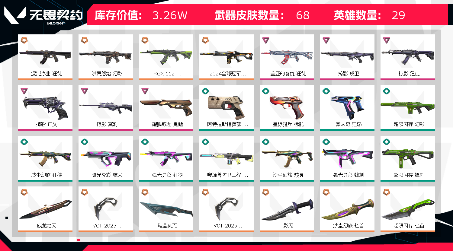 • 皮肤资产价值: 32550