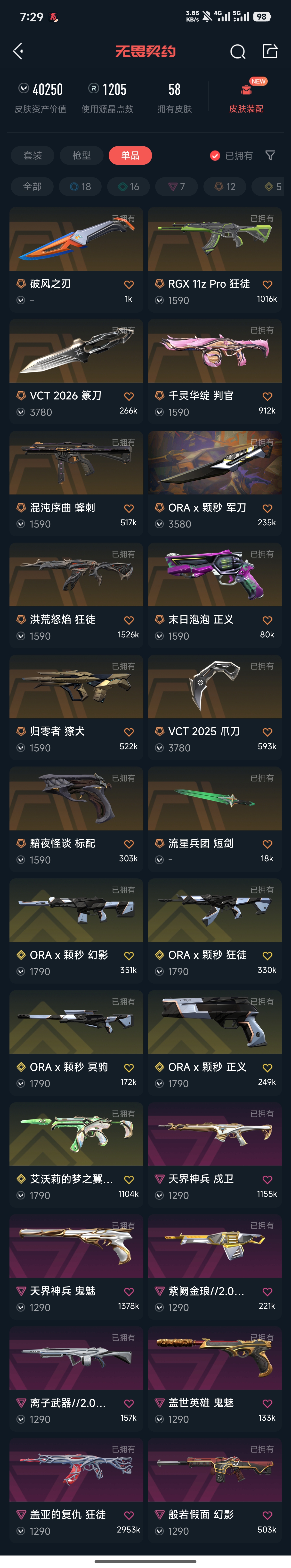 • 皮肤资产价值: 40250