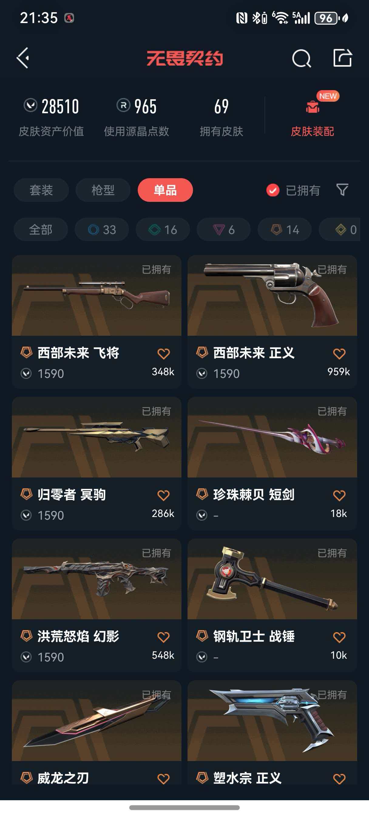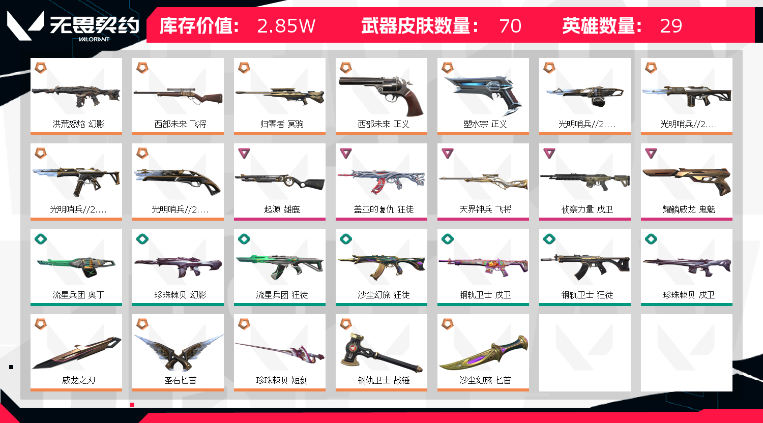 • 皮肤资产价值: 28510