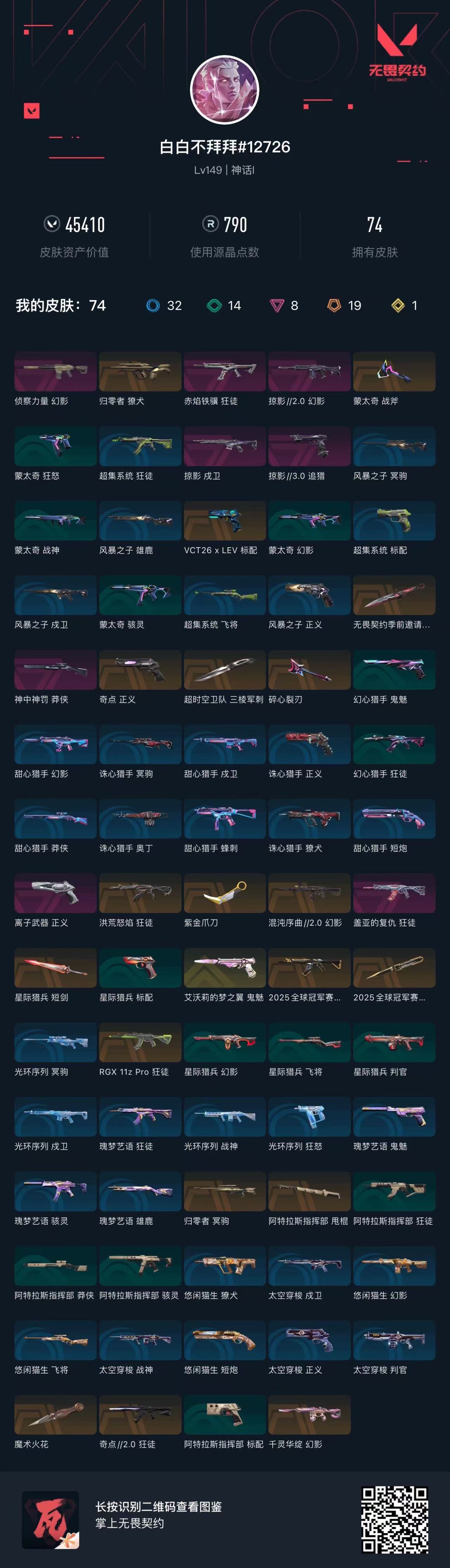 • 皮肤资产价值: 45410