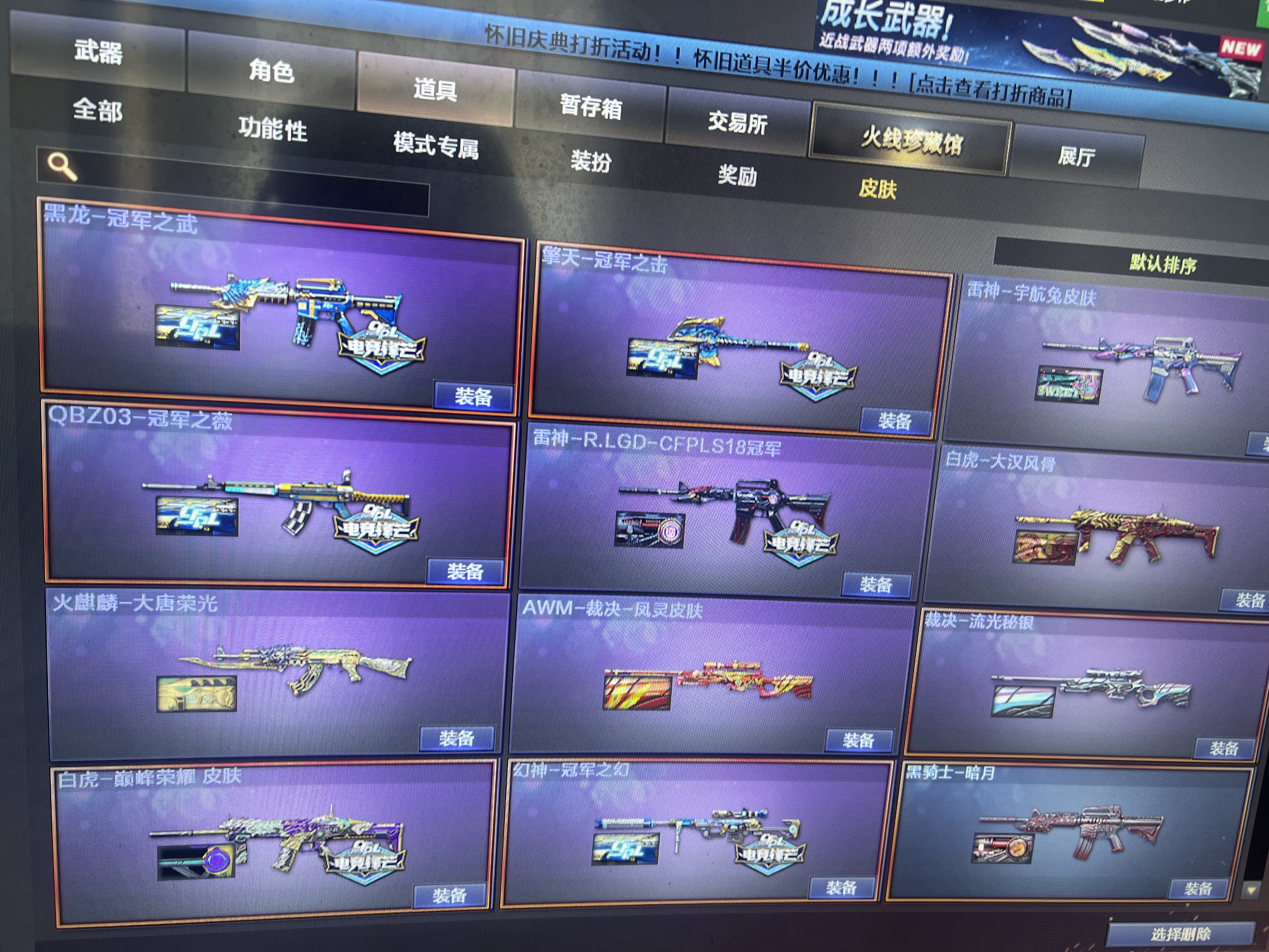 具体细节看图;柯尔特-冠军之特,炽芒蝶刃,Knife-冠军之刃,传说女帝,隼,电竞教官-云悠悠,RPK-盘龙,