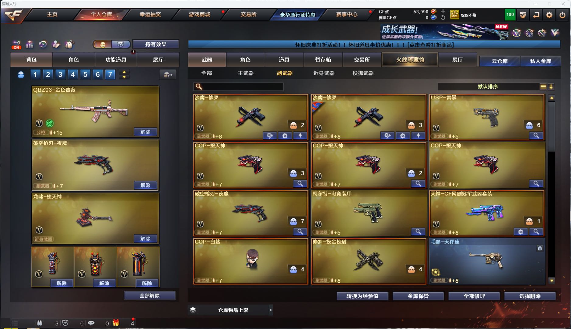 100v看截图;USP-雷暴,RPK-盘龙,QBZ03-金色蔷薇,M200-幻神,加利尔ACE-天袭,Kar98K-星神,
