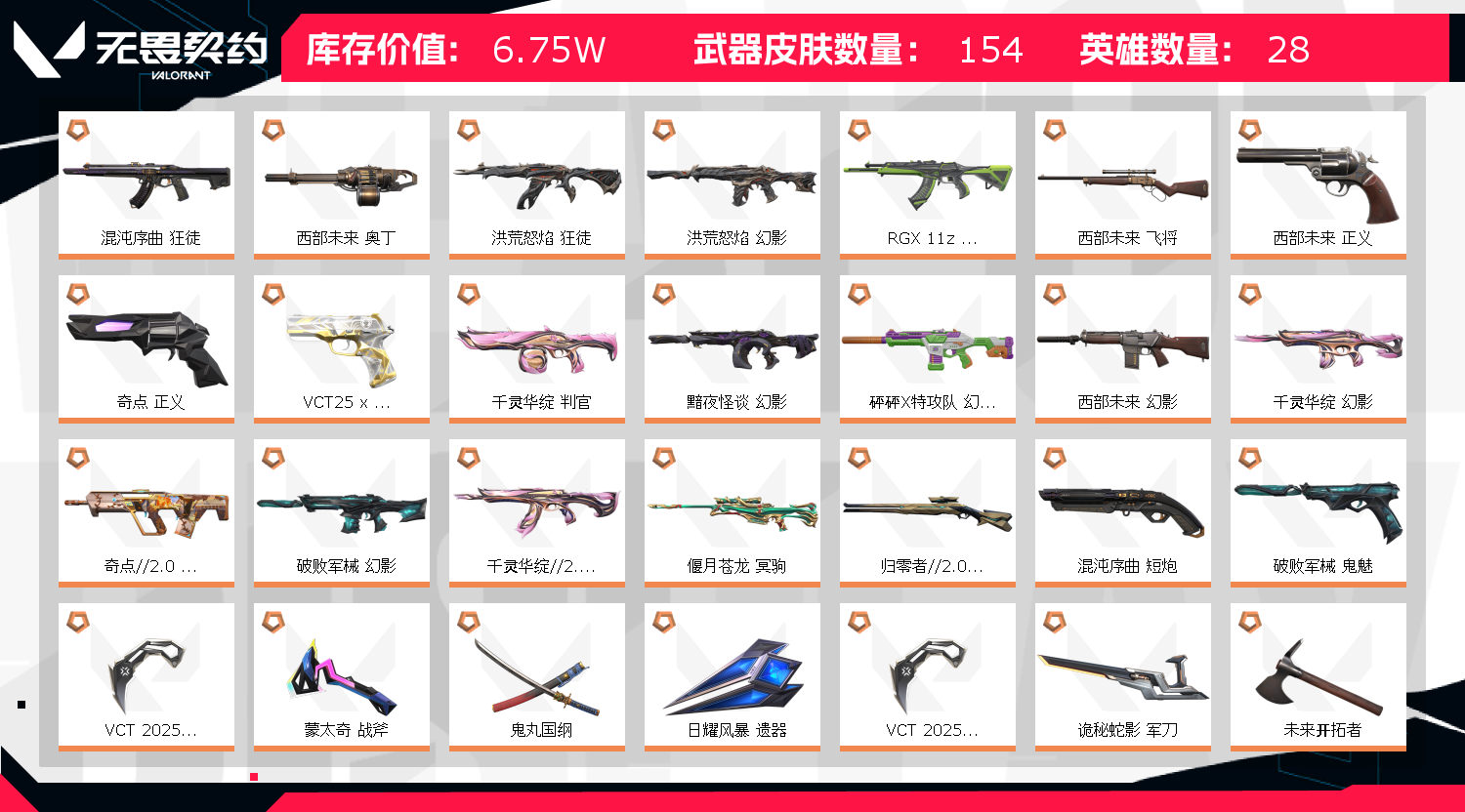 异地冻结秒结⚡重新登一下就行❤自动换手机令牌验证。炸鱼的老板饶了我,请各位老板不要挂机,挂机永久拉黑,租号是实名的,谢谢 小本买卖东拼西凑买的的皮肤。到时请勿再开游戏,多玩会本无所谓,但是系统会踢下线导致账号挂机禁赛会拉黑 使用外挂,恶意发言,在游戏内骗人等违规操作,拉黑全网公示,使用外挂脚本导致非正常游戏封号的,1.登陆界面稍等2分钟会上去老板不要着急,一次不行多来几次wegame界面要耐心等2分钟,登不上可换电脑重试 2.密令会自动输入如果一次不成功多来几次 3.到时请及时续租,系统会踢下线导致账号挂机,导致禁赛的一律拉黑 4.祝老板玩的愉快,喜欢可以收藏关注,请及时续租不要挂机,导致禁赛的一律拉黑4;西部未来 奥丁,VCT 2025 爪刀,天界神兵//2.0 幻影,盖亚的复仇 狂徒,洪荒怒焰 狂徒,异鳞魔蛇 幻影,侦察力量 幻影,