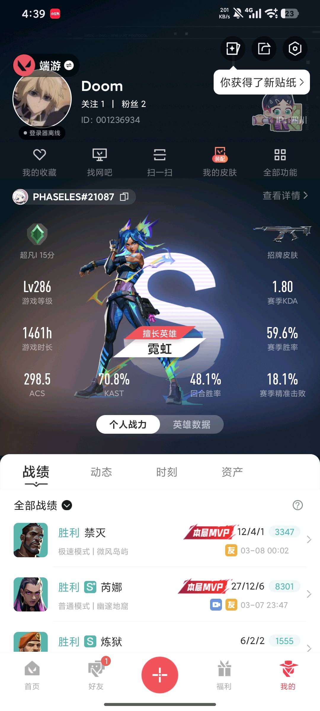 • 游戏区服:无畏契约-wegame / wegame / wegame