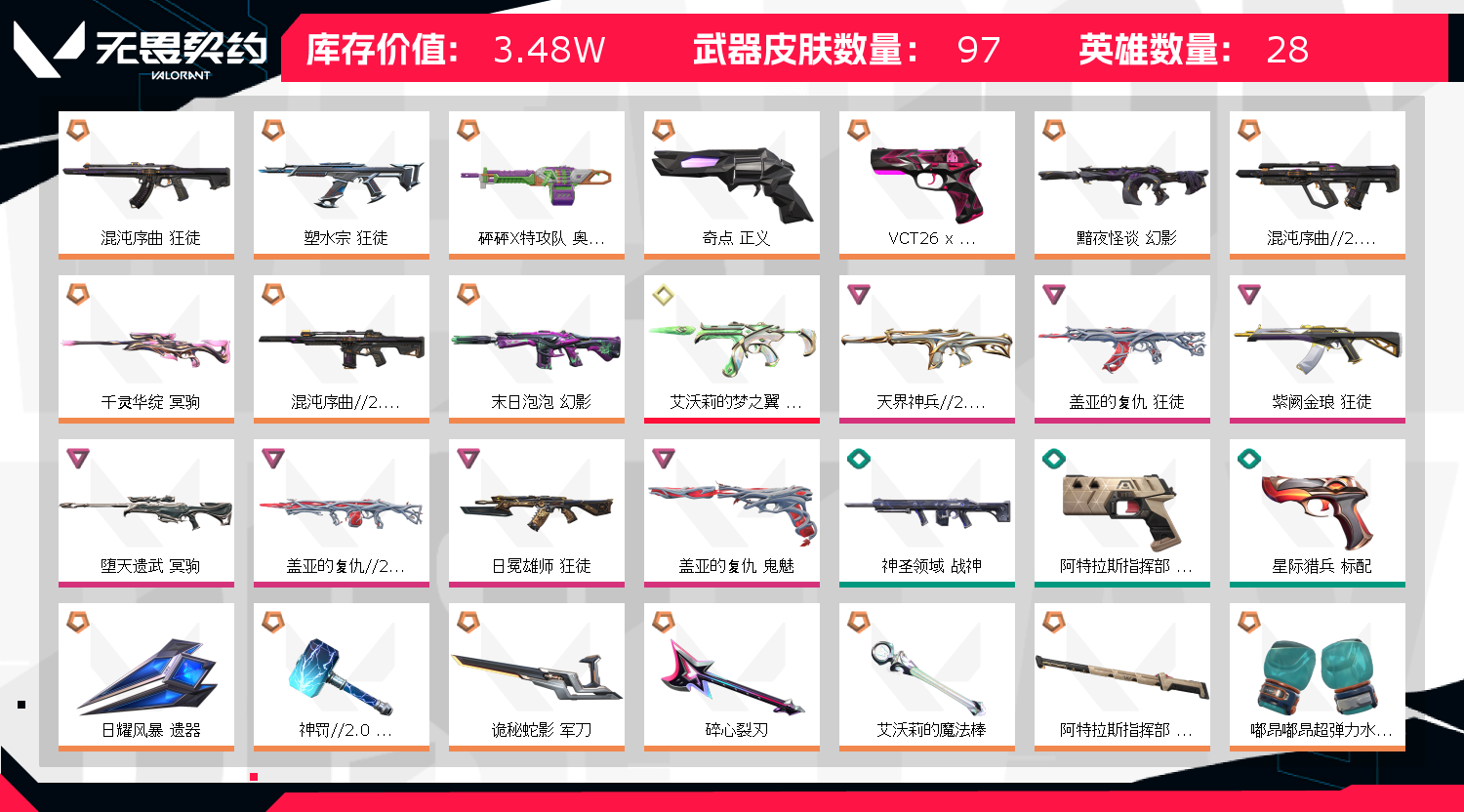 • 皮肤资产价值: 34760