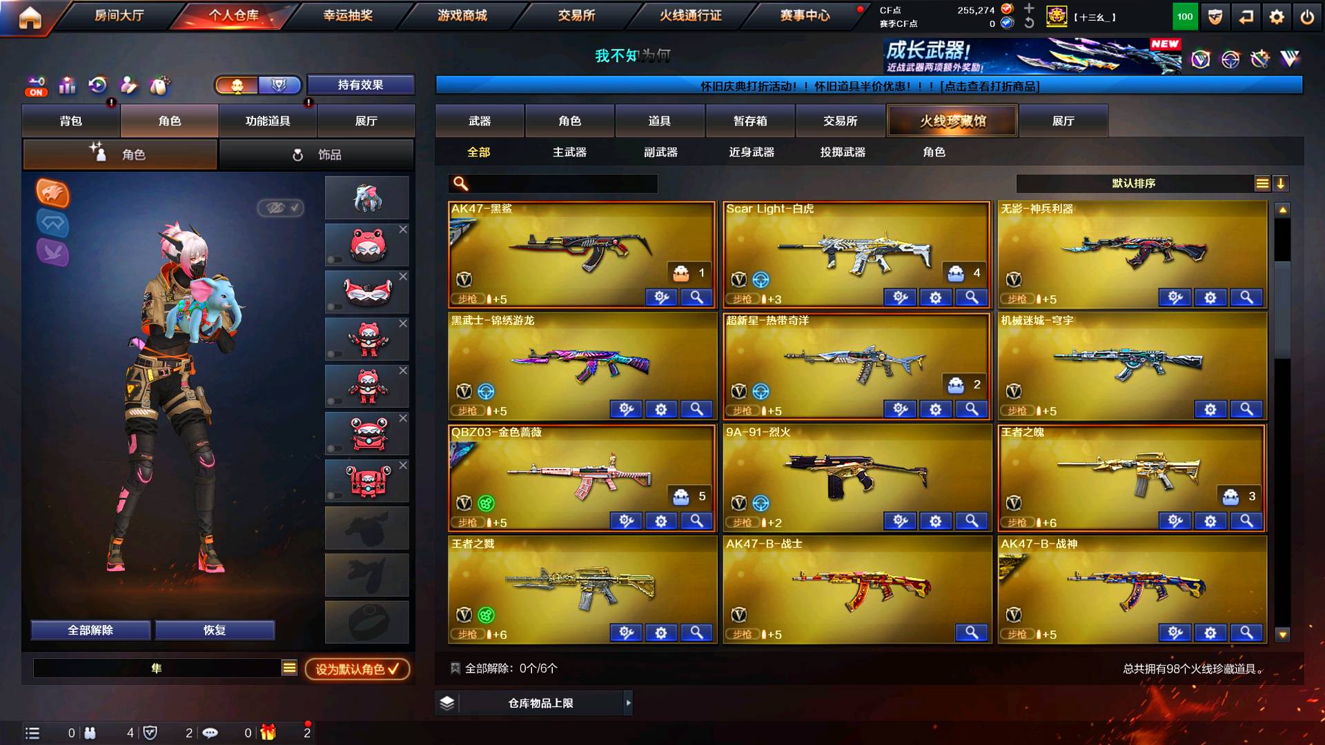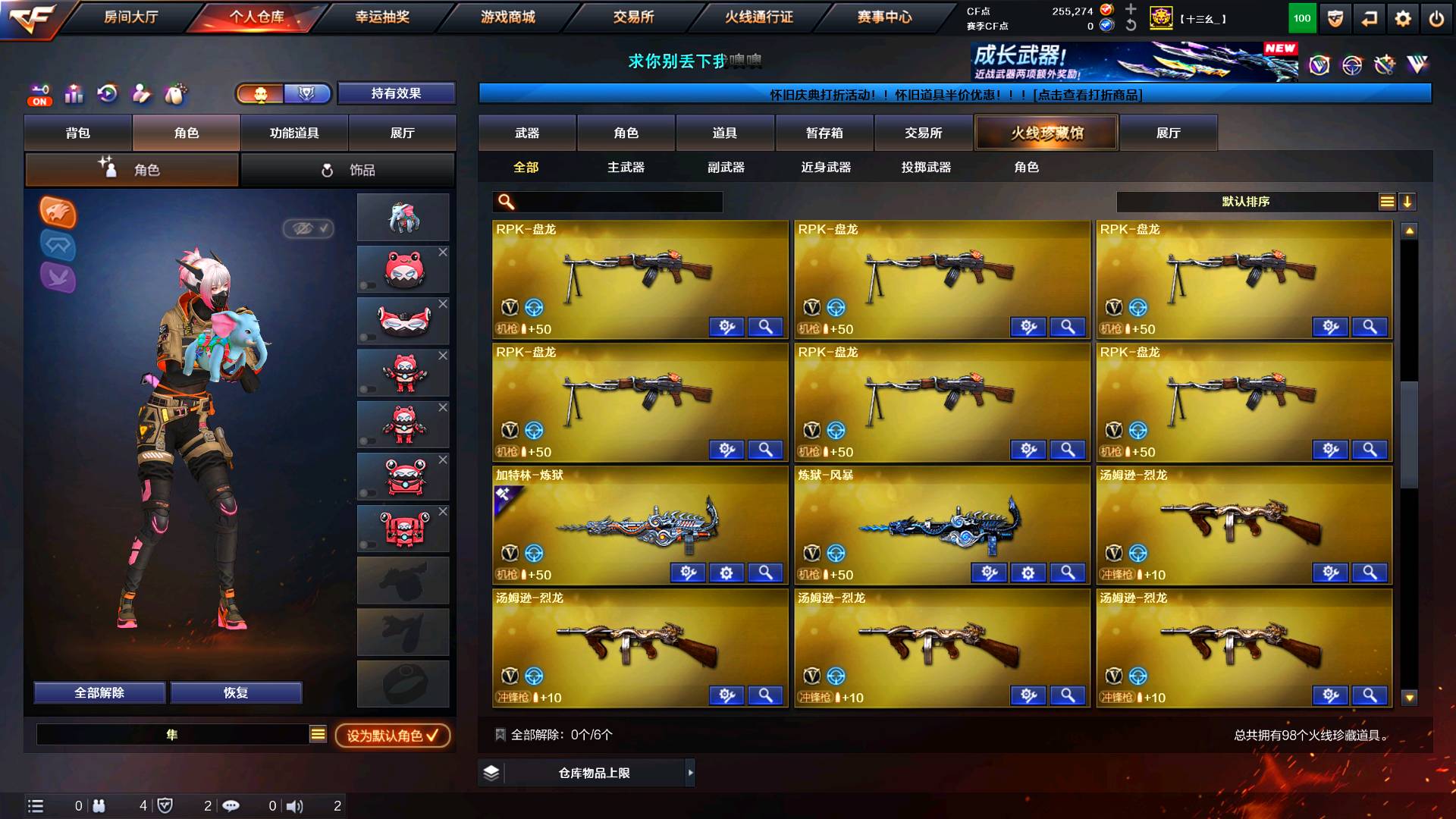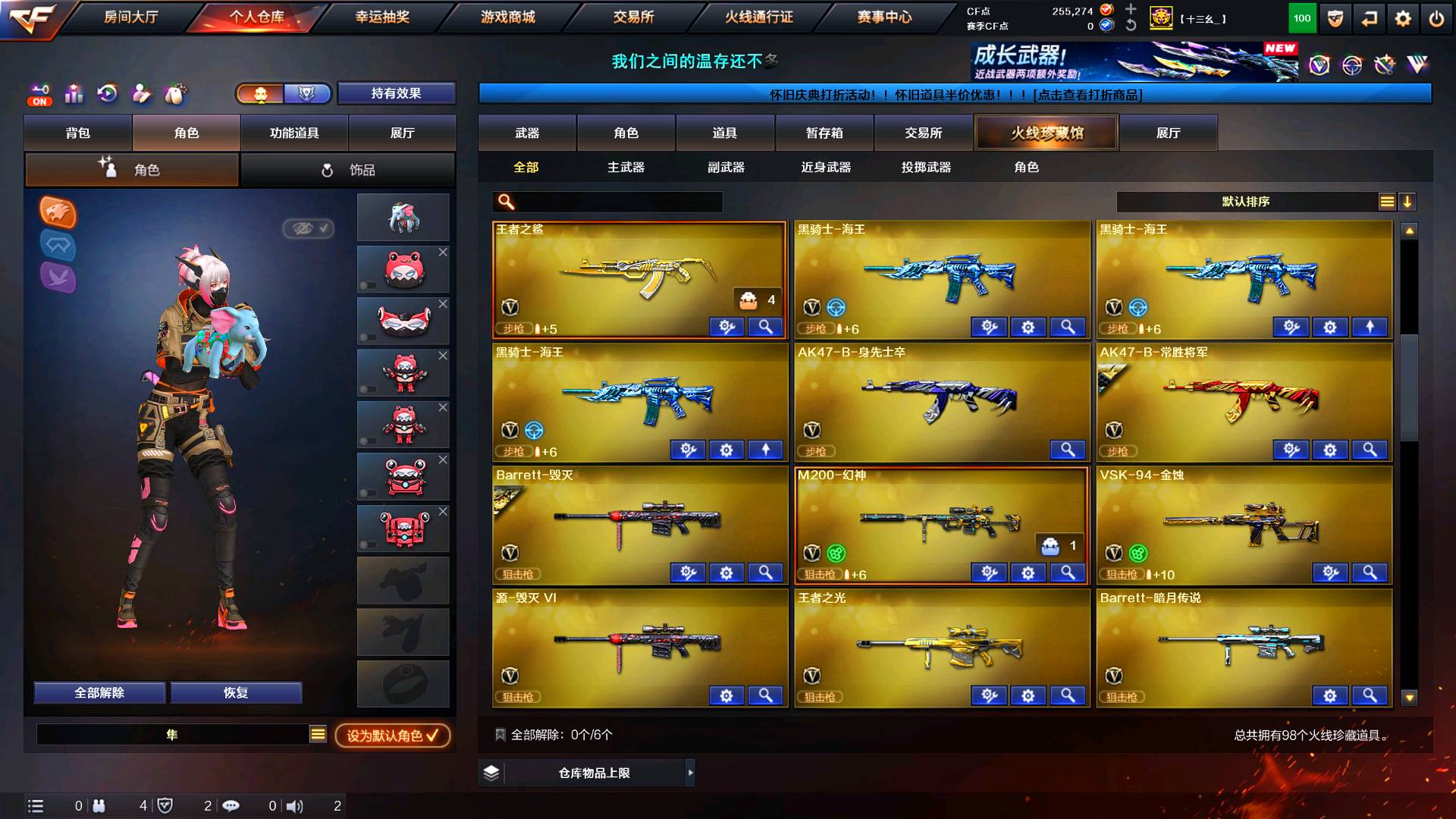 爆破生化追击 跳跳乐 挑战 基本全能 生化幽灵全有 弹夹都有 炼狱有泡泡象皮肤 7迷你生花手雷;炽芒蝶刃,隼,晴雅,RPK-盘龙,QBZ03-金色蔷薇,炼狱-泡泡象,M200-幻神,