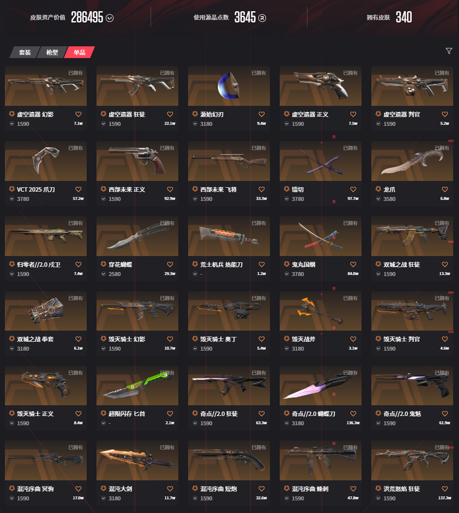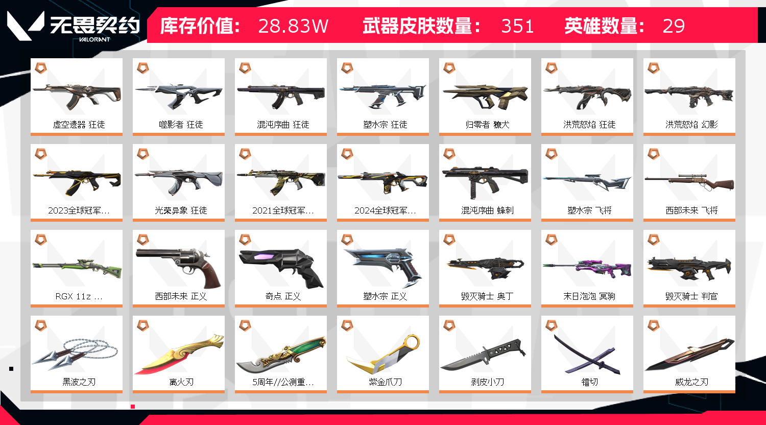 【秒解冻】29W库⚡VCT篆刀⚡猫猫套⚡全限定套⚡怜悯⚡光谱套⚡毁灭套⚡龙炎套⚡混沌套⚡时空套