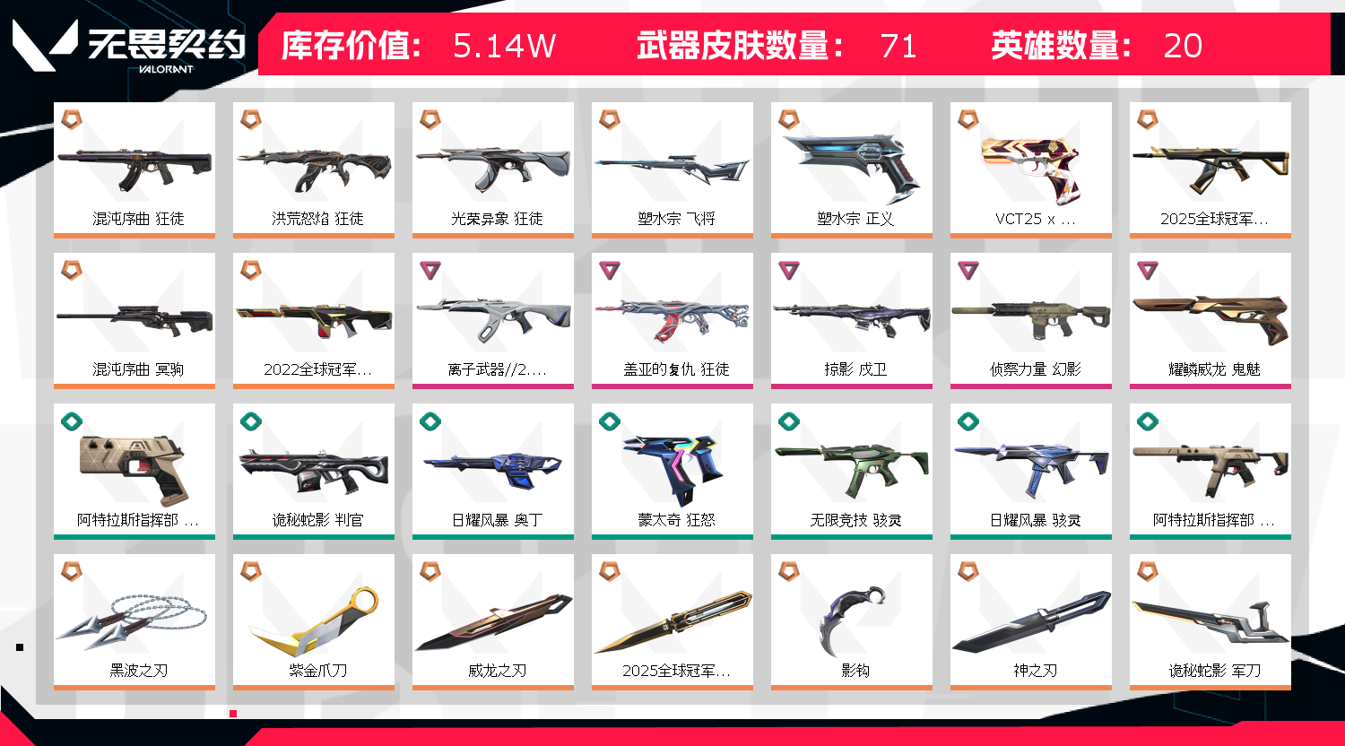 • 皮肤资产价值: 51380