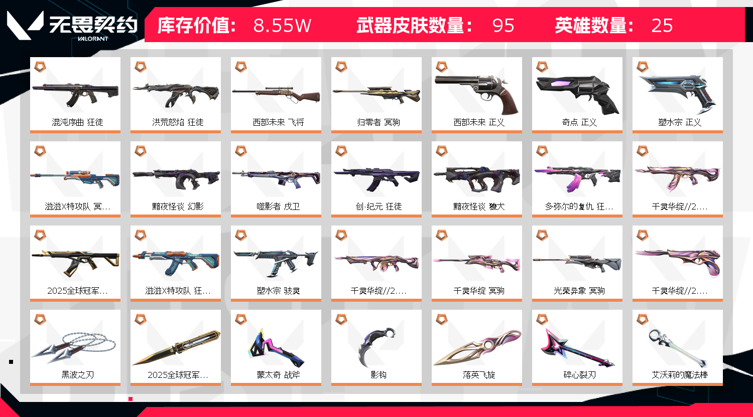 首页 > 租号大厅 > 无畏契约-wegame > wegame/wegame > 8.5w库存🔥2026vct篆刀🔥25冠军🔥莲花套🪷掠夺2.0套装🔥魔法棒🪄