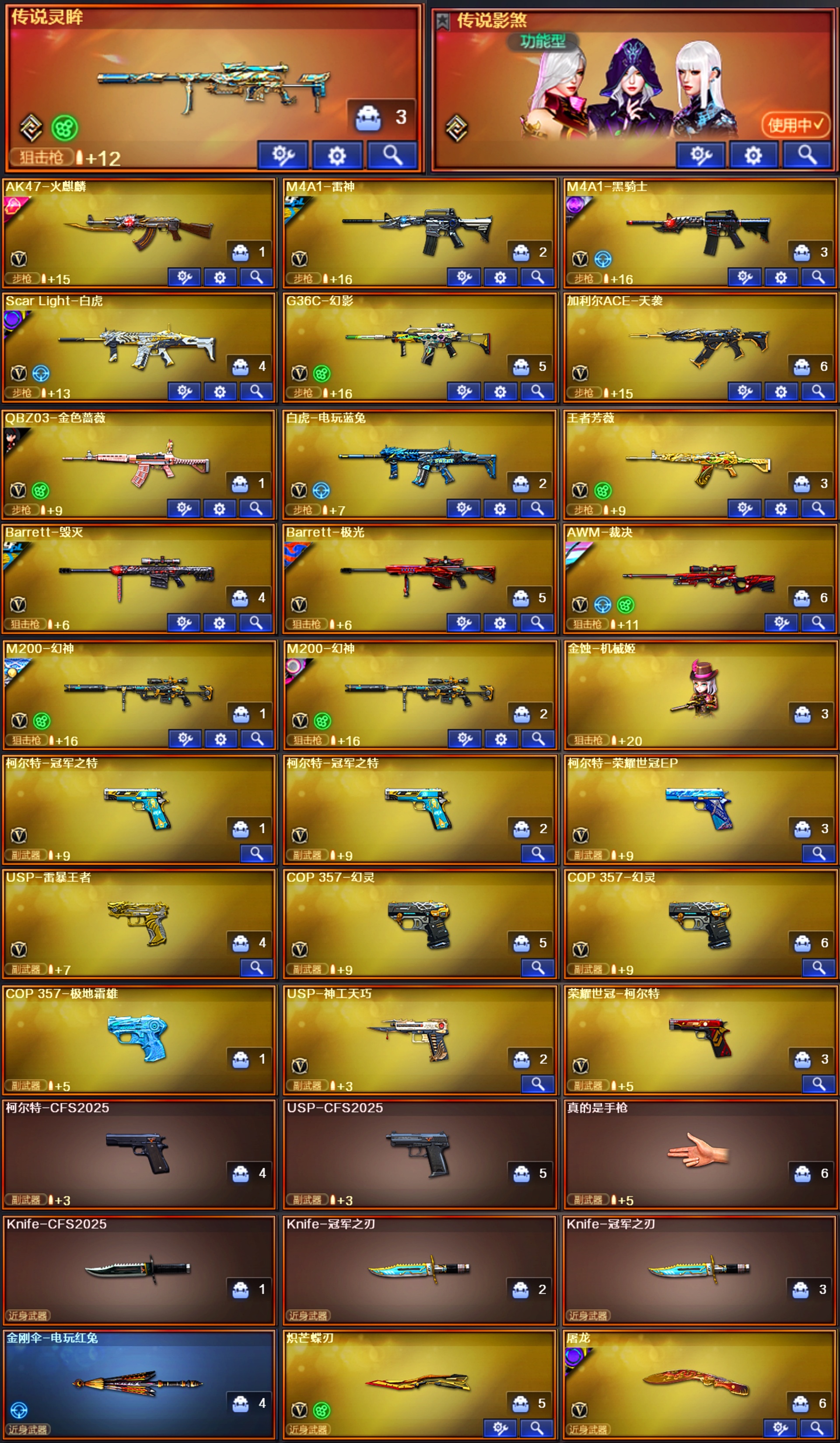 金名灵眸加利尔幻影影煞♥幻神音效卡8皮EP宠儿♥裁决音效卡3皮流光♥白虎5皮巅峰♥QBZ3皮AG