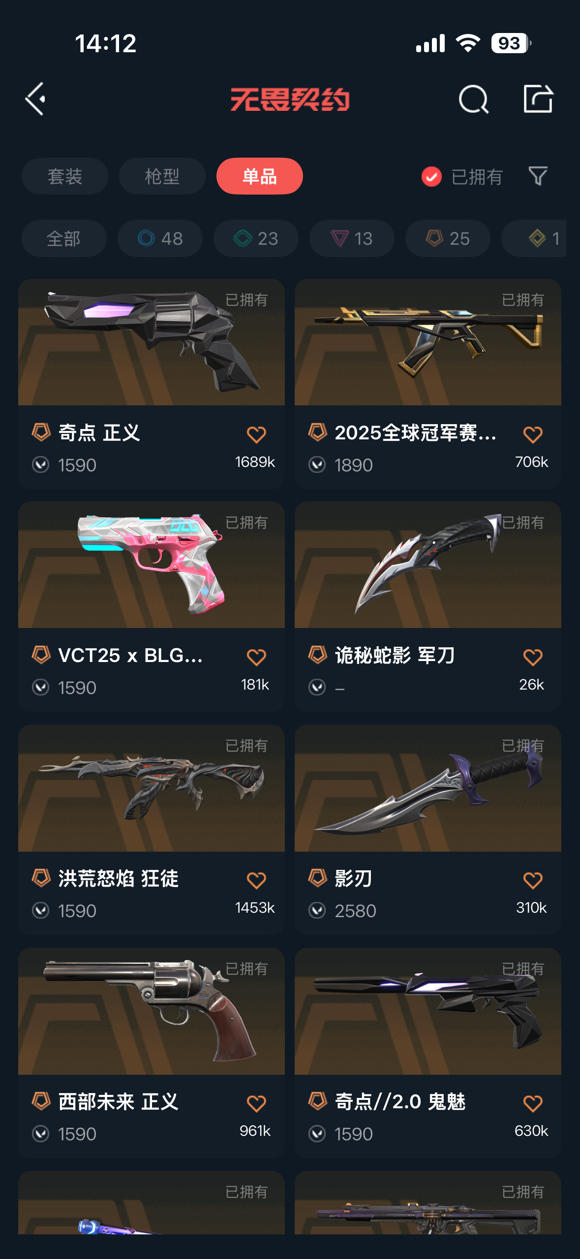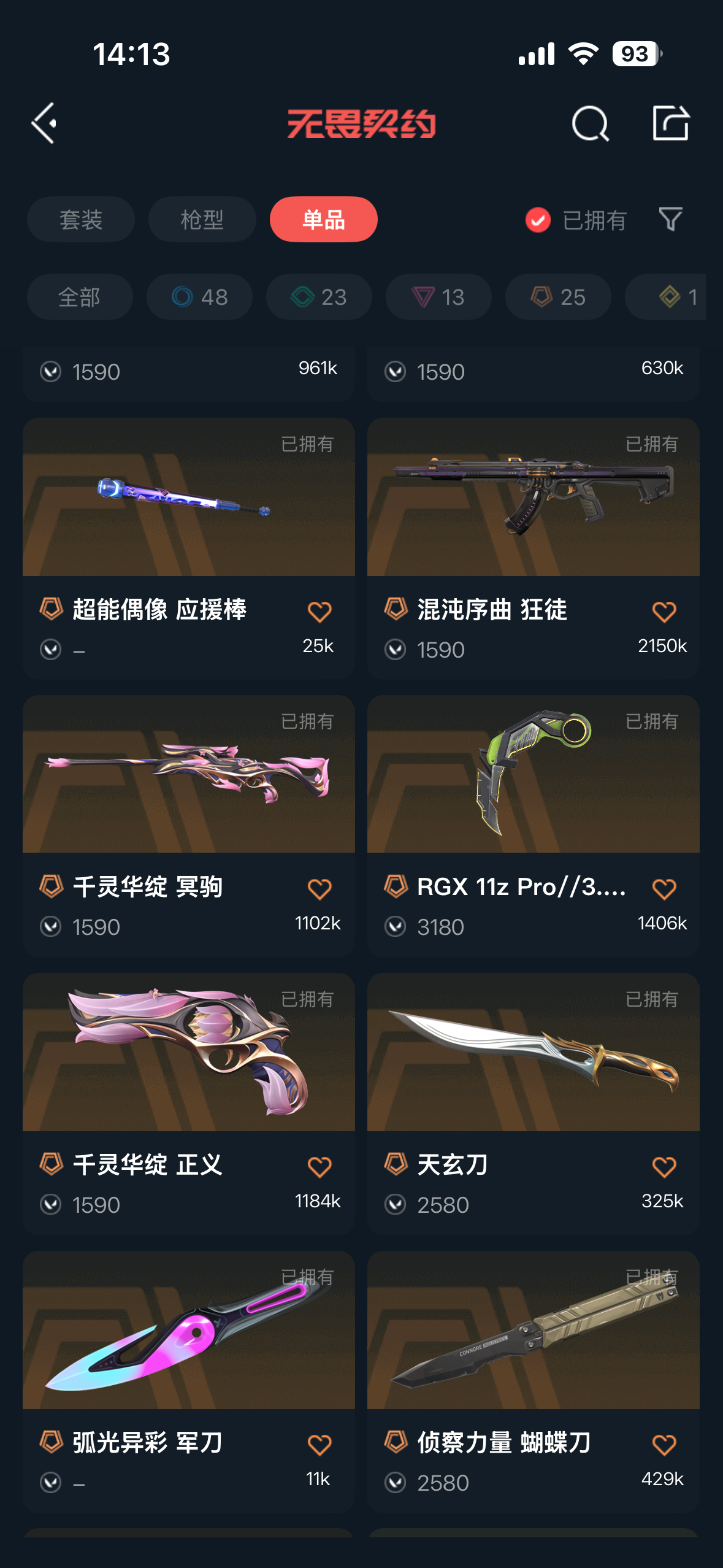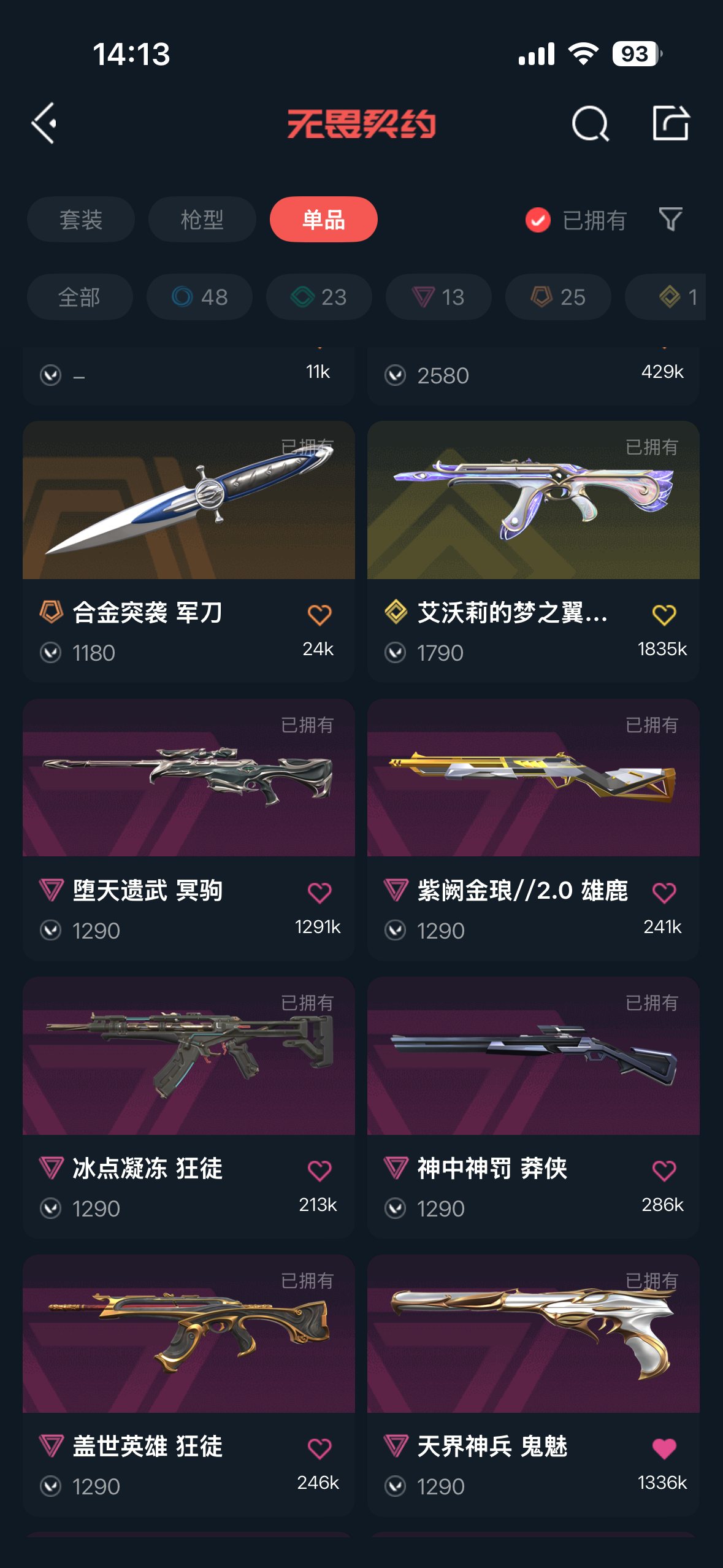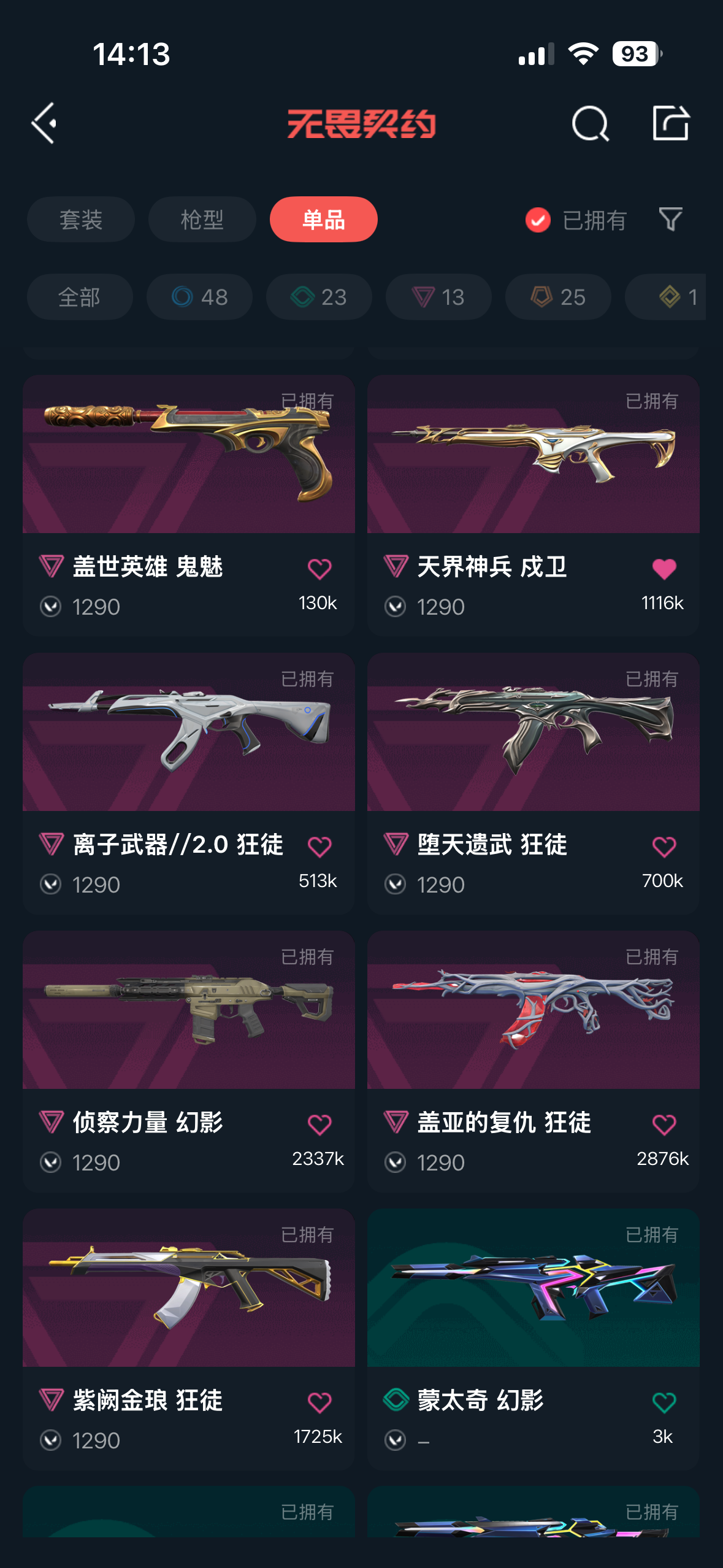 无畏契约国服 部分热门皮肤都有 盖亚/紫金/弃王大狙/三棱军刺;盖亚的复仇 狂徒,虚空遗器 狂徒,洪荒怒焰 狂徒,侦察力量 幻影,紫阙金琅 狂徒,天界神兵 戍卫,堕天遗武 狂徒,