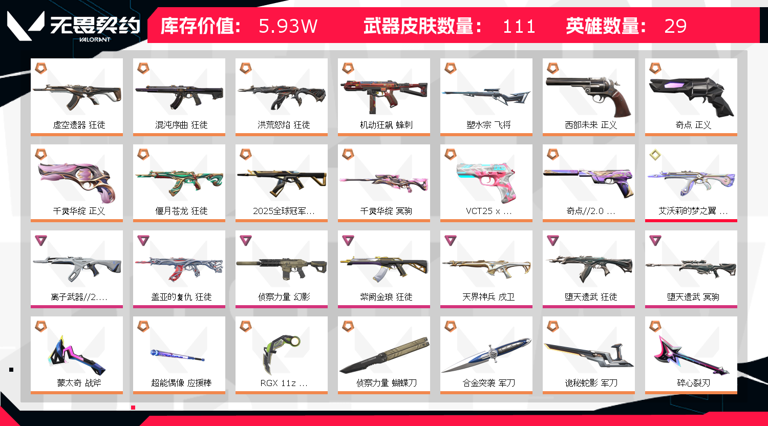 • 皮肤资产价值: 59280