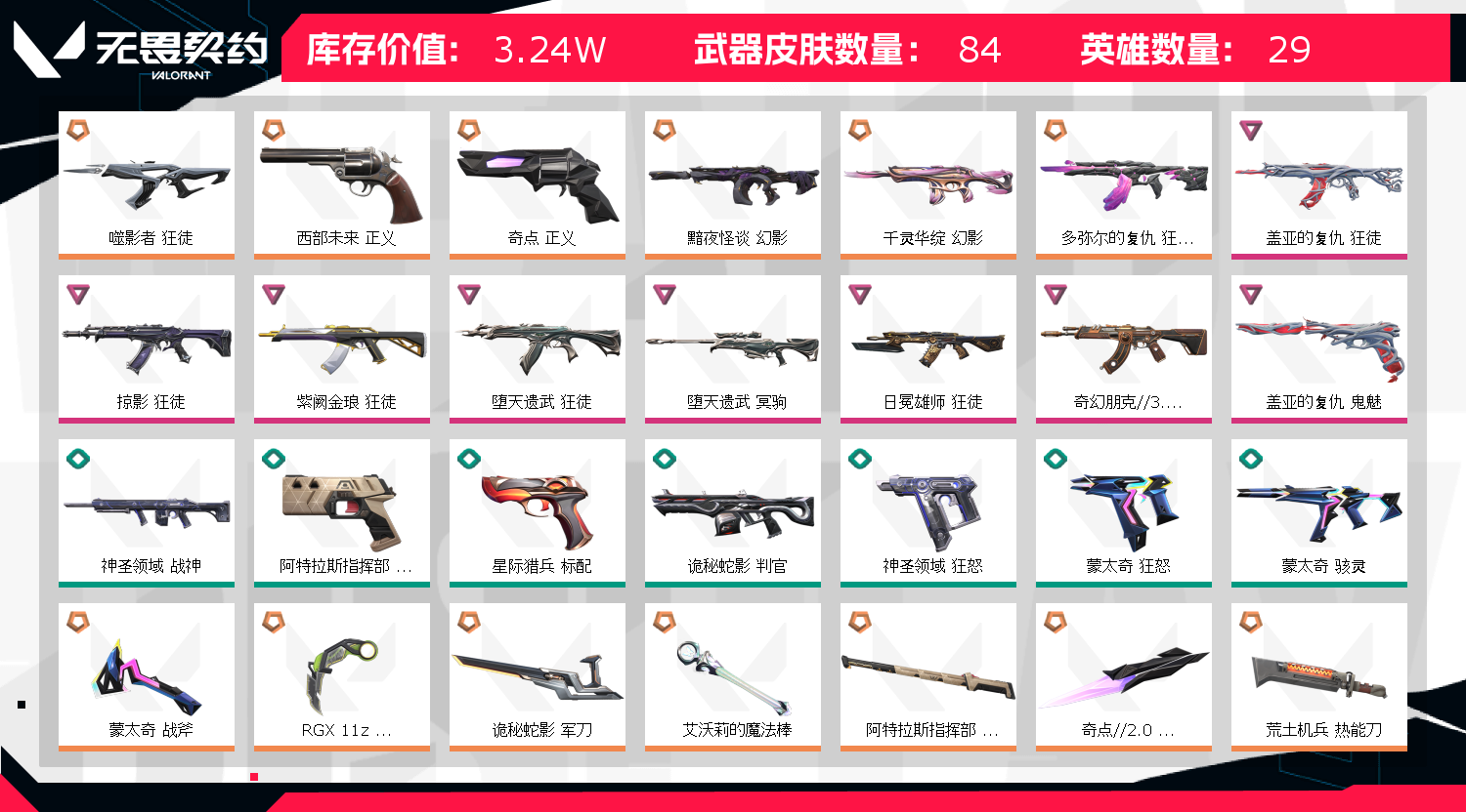 • 武器皮肤数量: 84