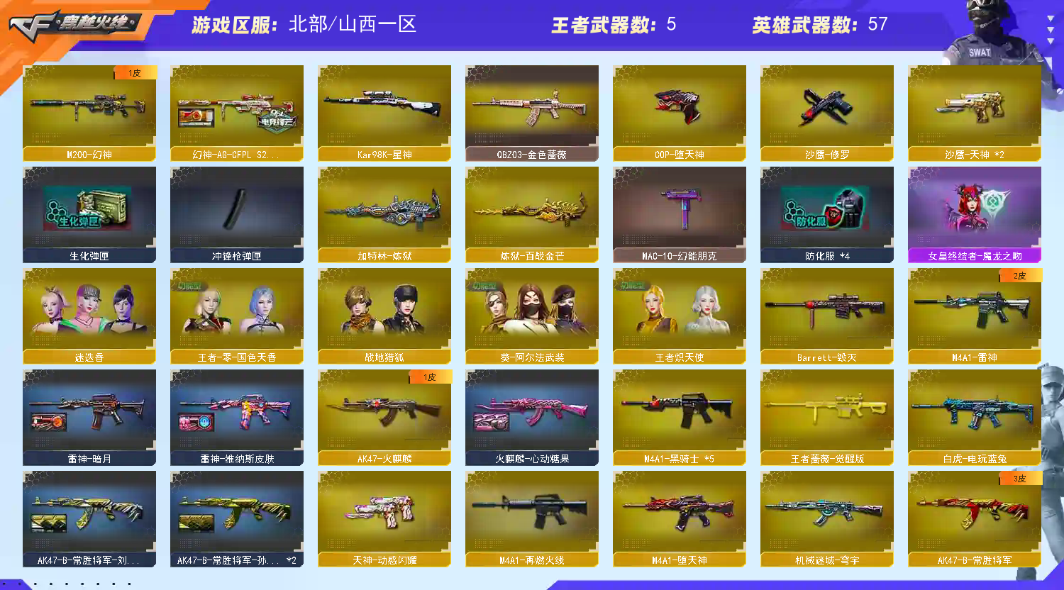 • 游戏区服:穿越火线 / 北部 / 山西一区