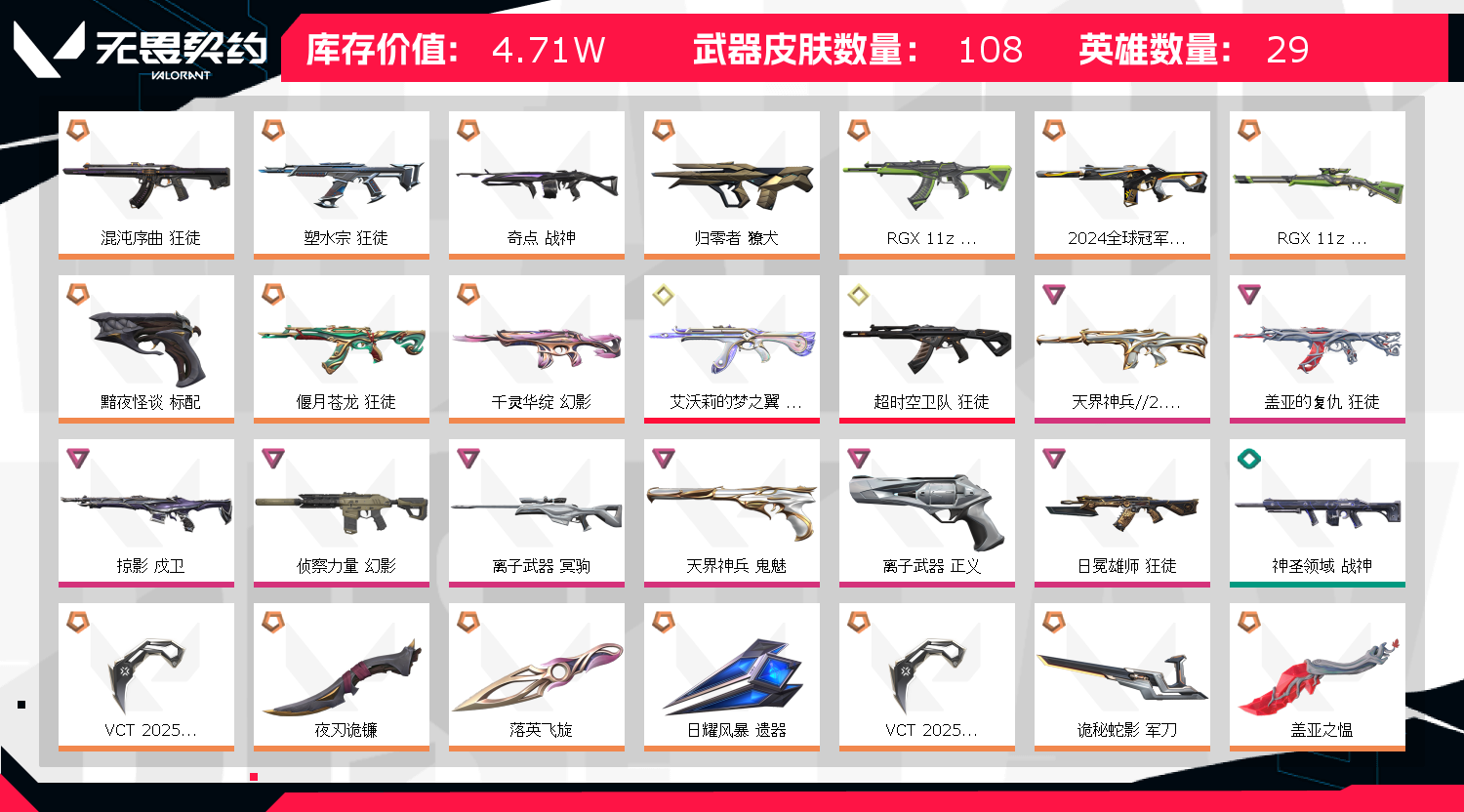 • 武器皮肤数量: 108