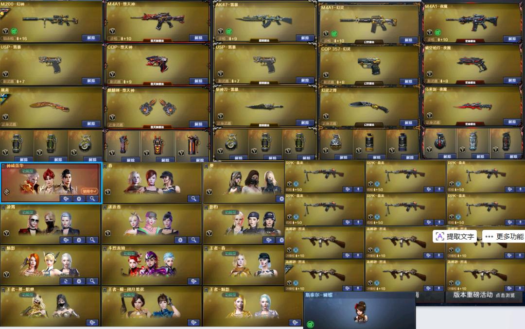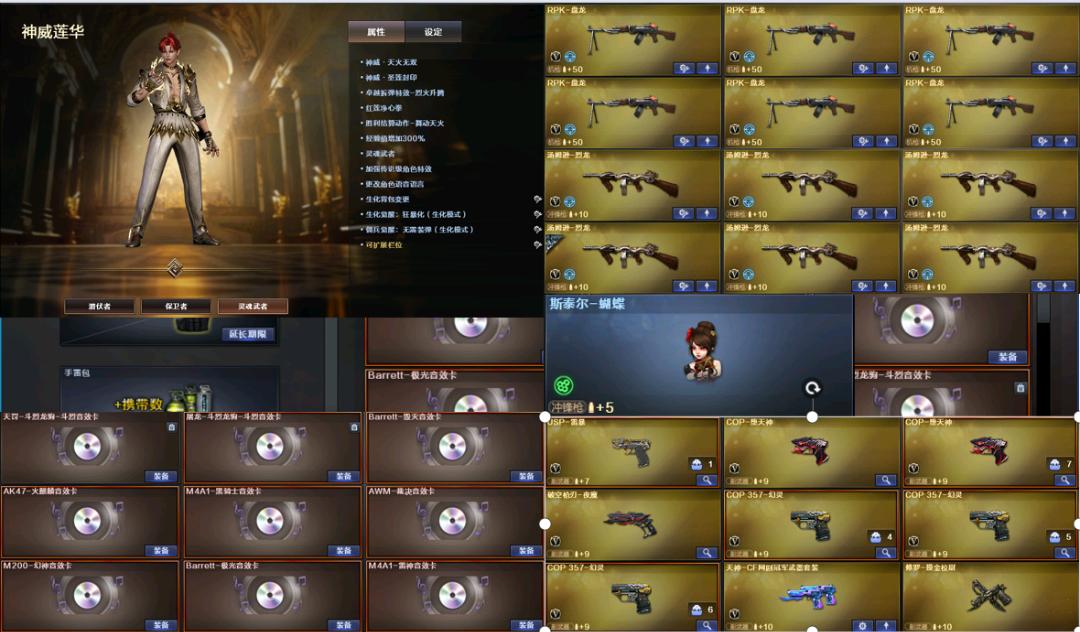 神威莲华⭐215V生化爆破双全装,幻神三件套,裁决三件套,详细看截图。绝对物超所值。;USP-雷暴,RPK-盘龙,QBZ03-金色蔷薇,M200-幻神,Scar Light-白虎,