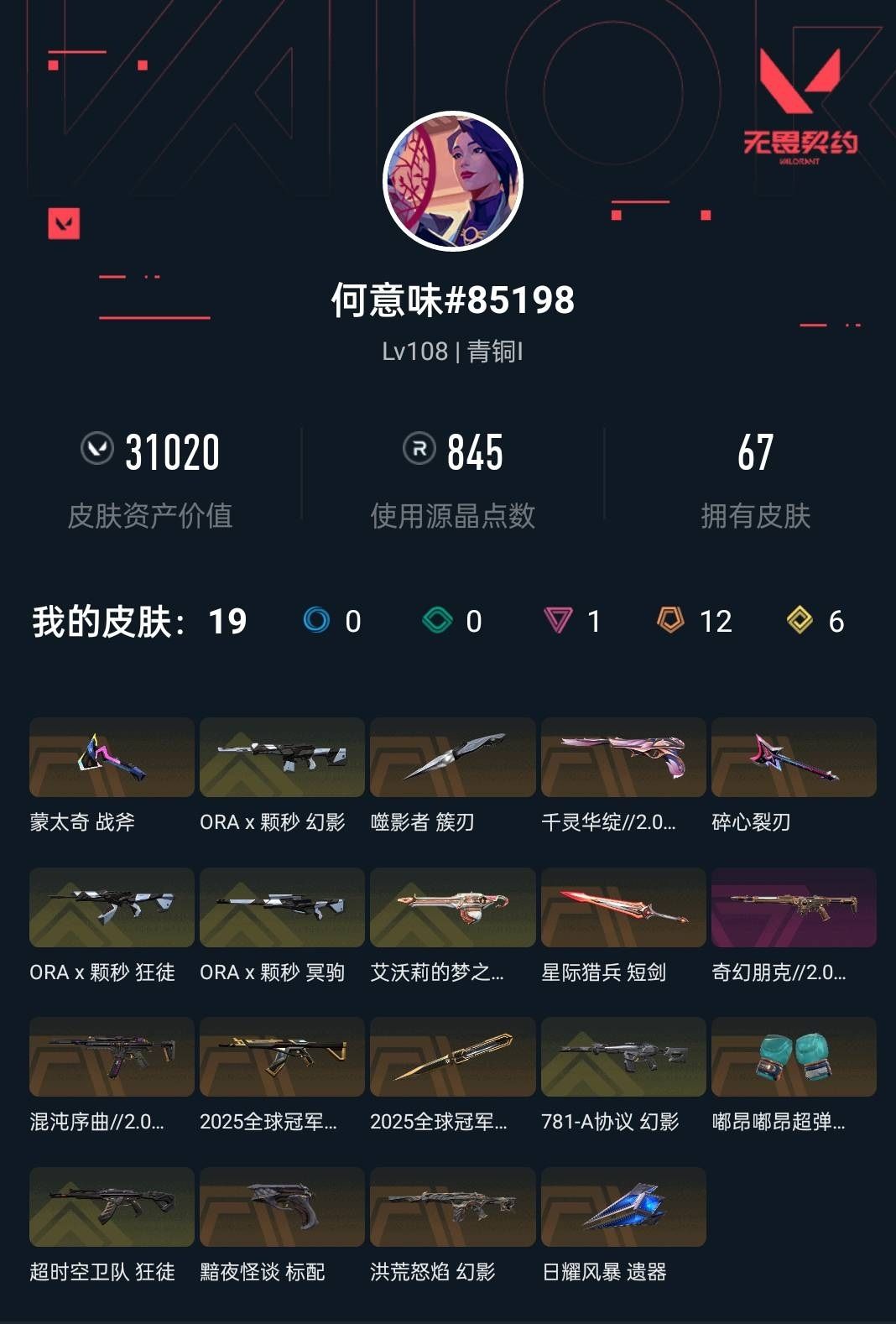 • 游戏区服:无畏契约-wegame / wegame / wegame