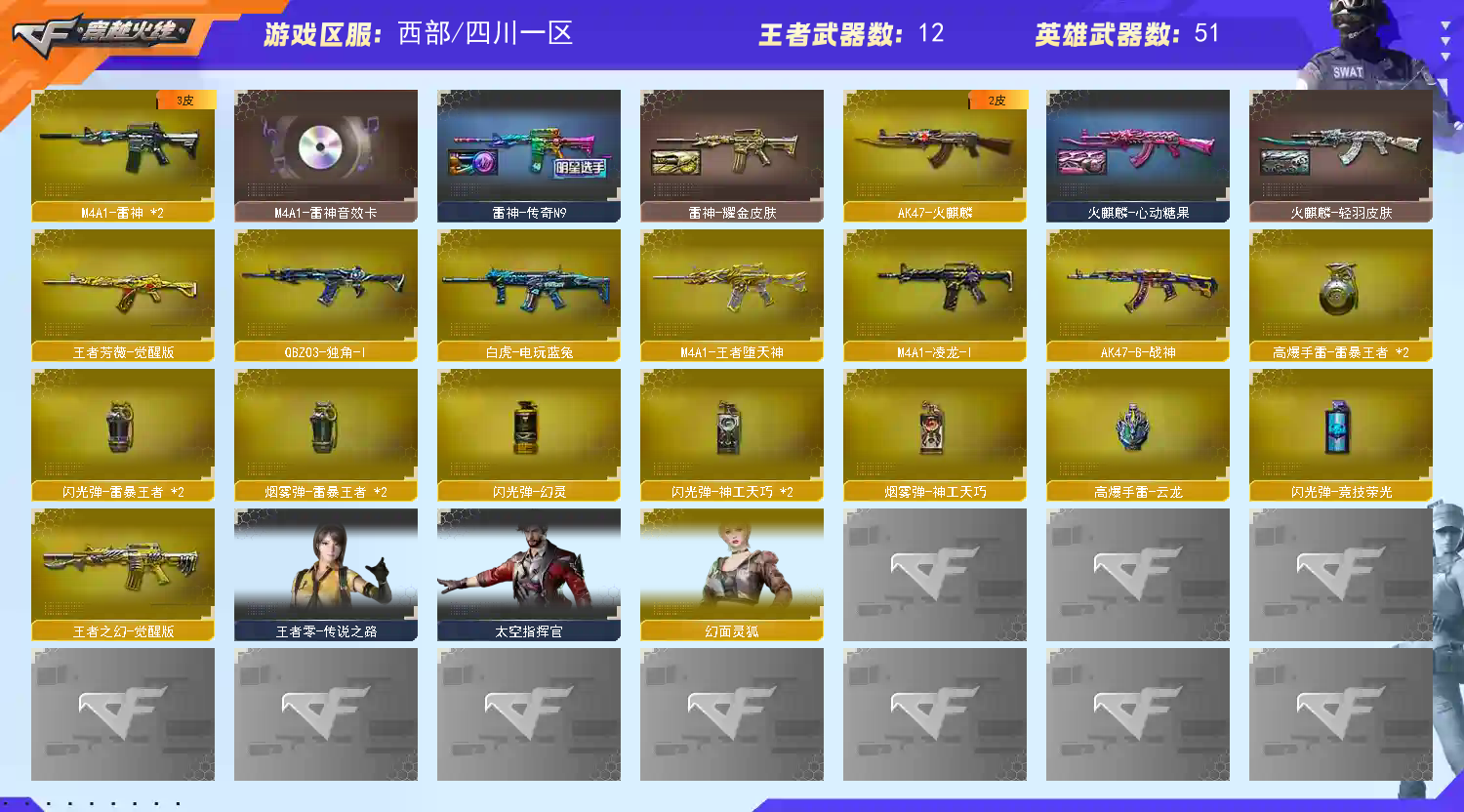• 游戏区服:穿越火线 / 西部 / 四川一区