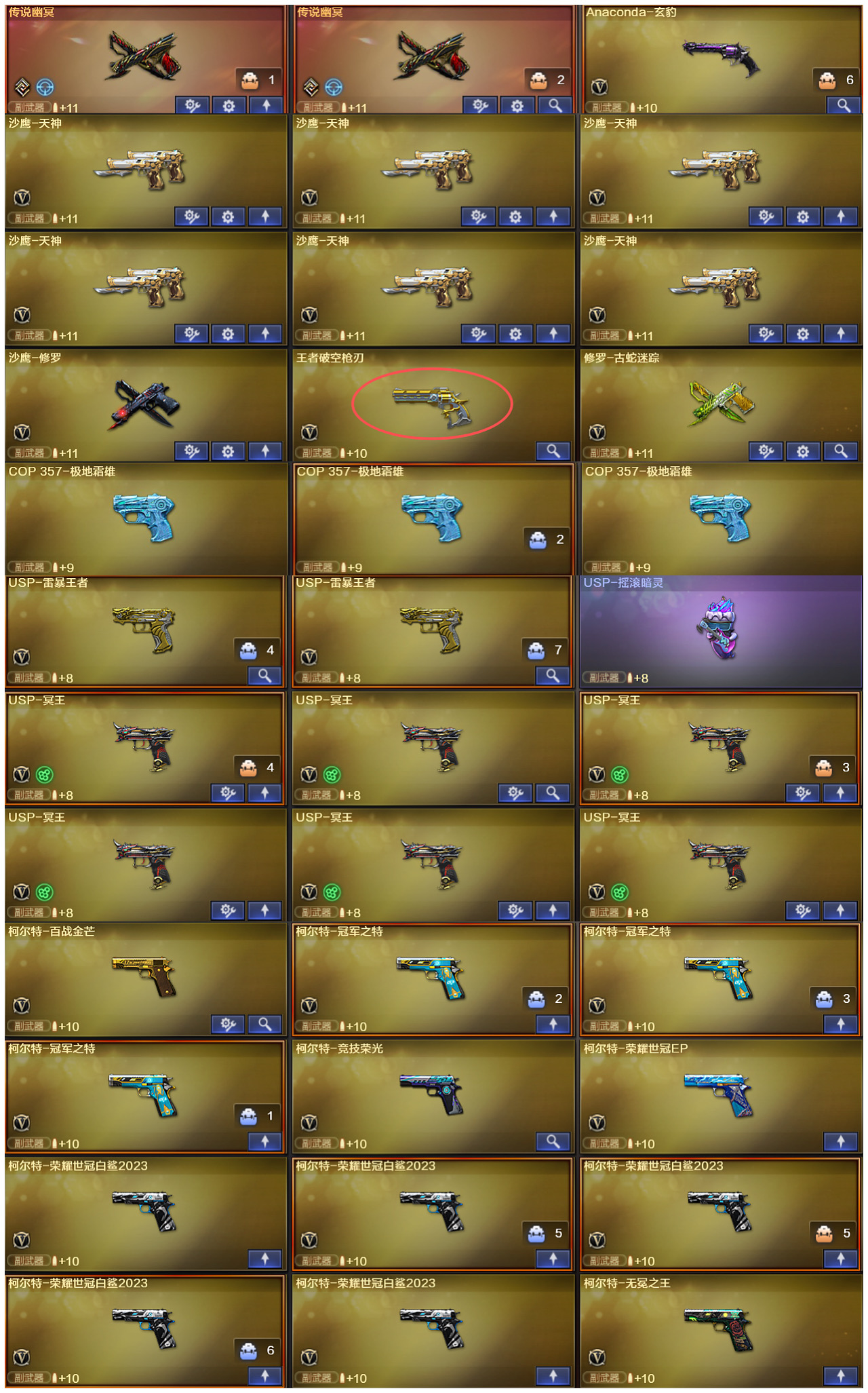 手枪天花板 2usp王者雷暴+6usp冥王 3冠军之特+5白鲨柯尔特+百战金芒柯尔特+无冕之王柯尔特+EP柯尔特 2COP极地霜雄 YZK幻神皮肤+白虎常旭皮肤 双生烟雾弹 请勿开挂和使用DMA,违规外设,鼠标宏,发布违规言论等,此账号已在法院进行合同备案 枪王排位赛请勿中途退出,若导致禁赛将拉黑处理,无法租凭本店铺所有账号,恶意退赛行为将上报平台商户经理进行处罚;柯尔特-无冕之王,USP-雷暴王者,柯尔特-荣耀世冠白鲨2023,传说幽冥,柯尔特-冠军之特,炽芒蝶刃,传说星骇,