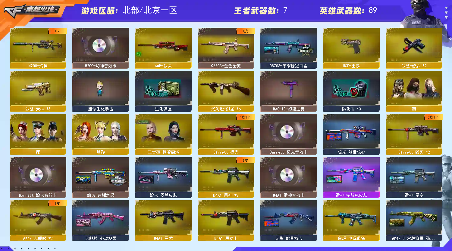 • 游戏区服:穿越火线 / 北部 / 北京一区