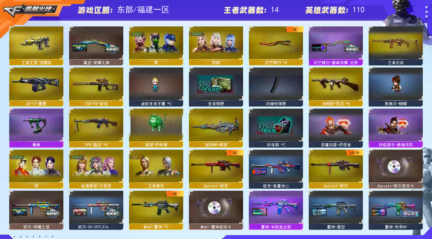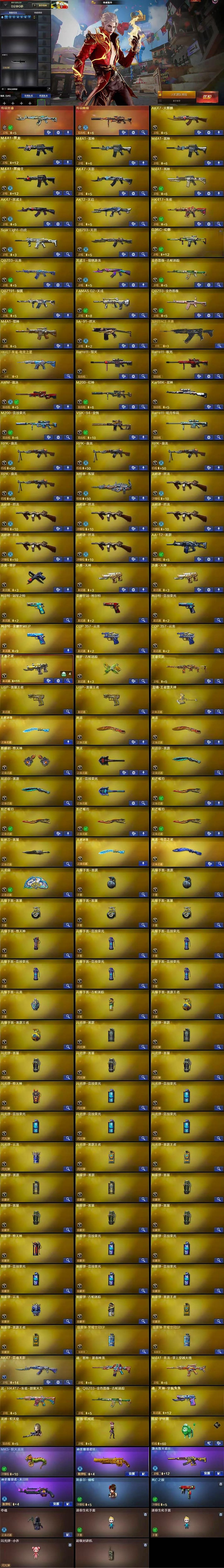喜欢的点点关注谢谢哈;USP-雷暴王者,荣耀世冠-柯尔特,柯尔特-冠军之特,炽芒蝶刃,隼,电竞教官-云悠悠,RPK-盘龙,
