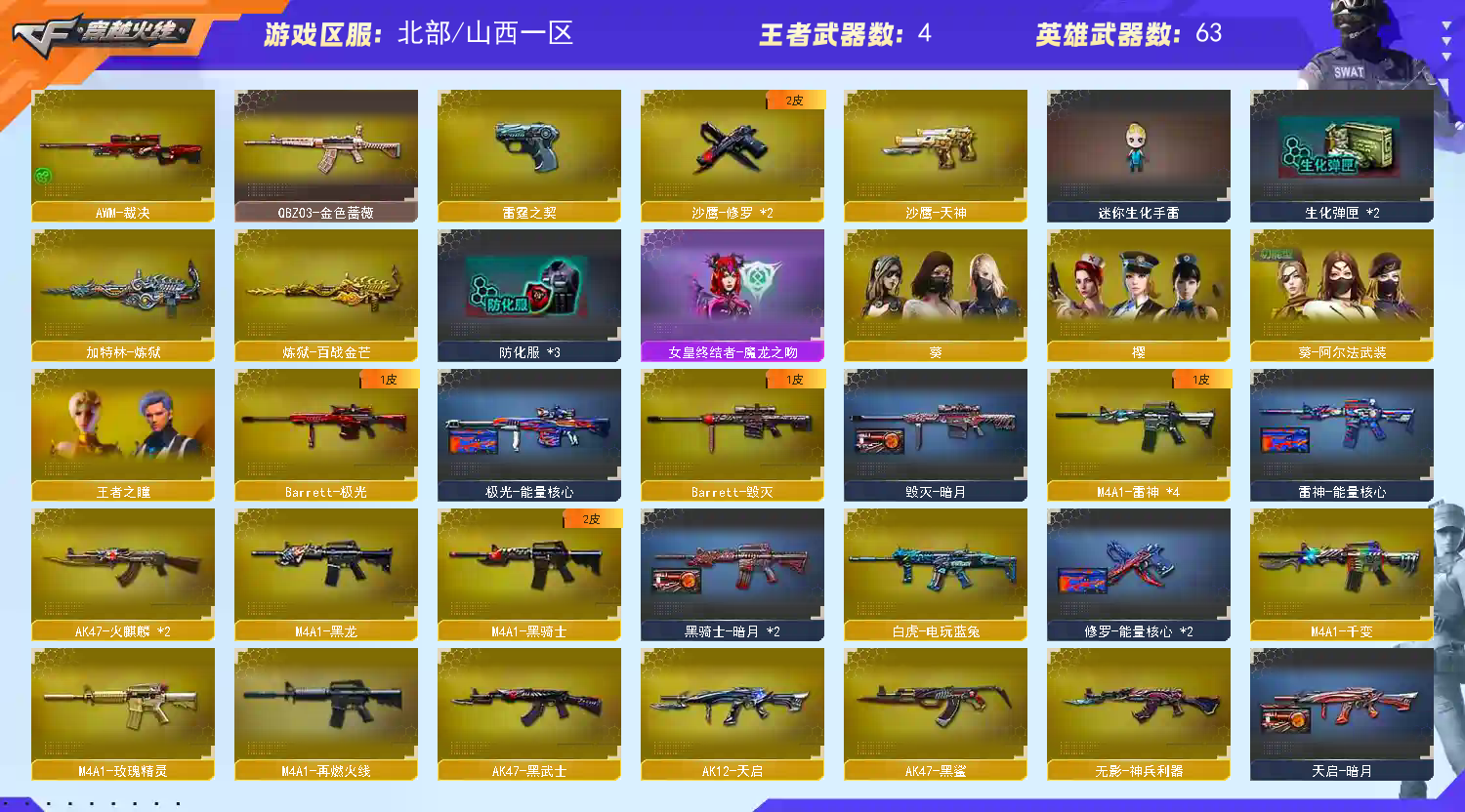 • 游戏区服:穿越火线 / 北部 / 山西一区