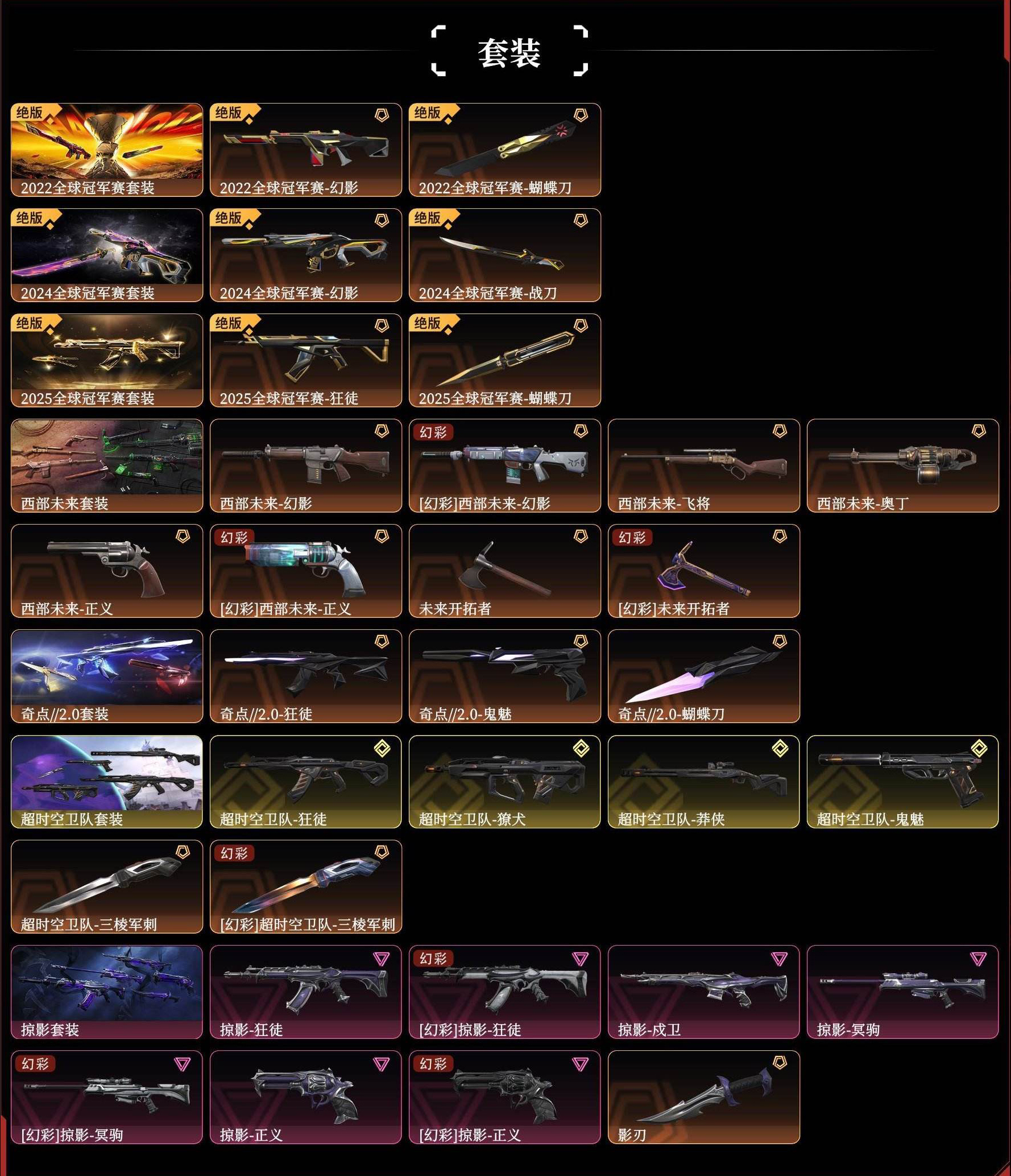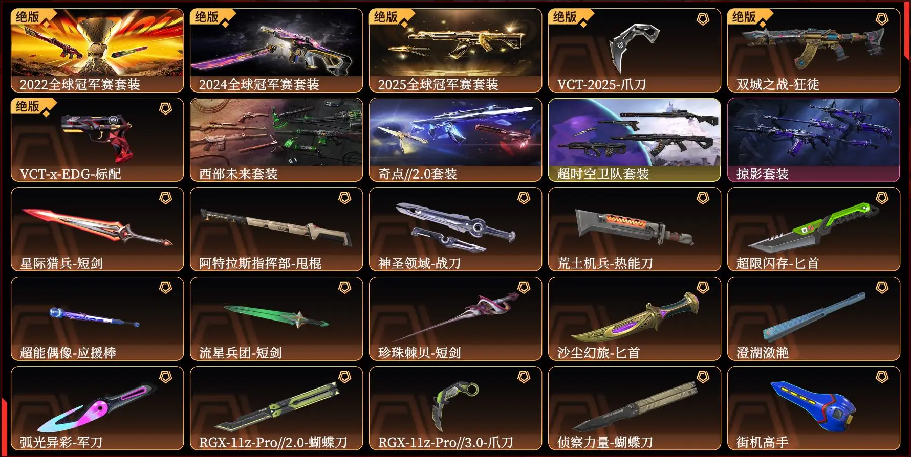 15W🔥212425冠军套❤️超时空套❤️奇点20❤️塑水宗❤️魔术火花❤️猫猫AK❤️VCT爪刀