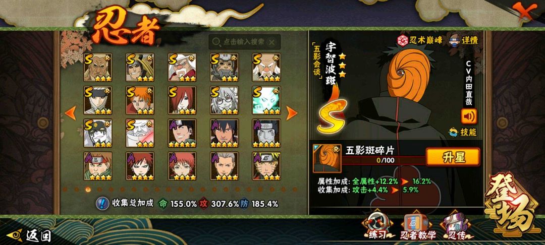 ✨55S✨391忍者✨2800w战力✨全忍者十尾带土✨破面带土✨漂泊带土✨五影斑