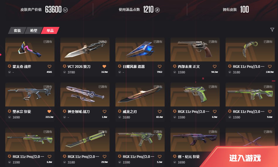 • 游戏区服:无畏契约-wegame / wegame / wegame