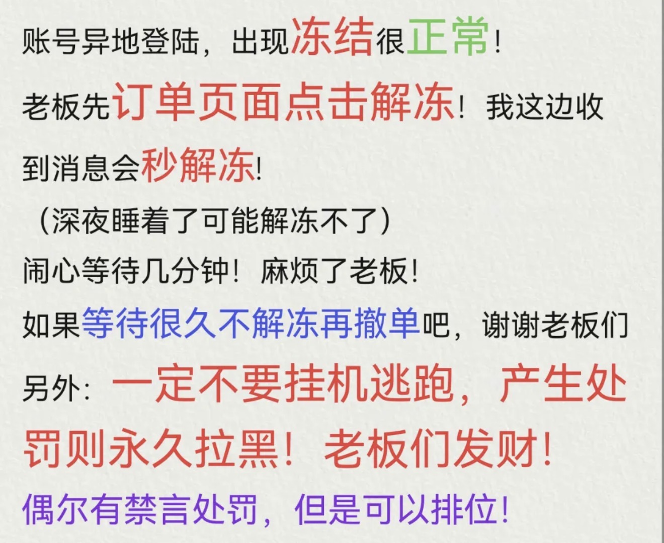 • 租号押金:0.0(订单结束后24小时退还)
