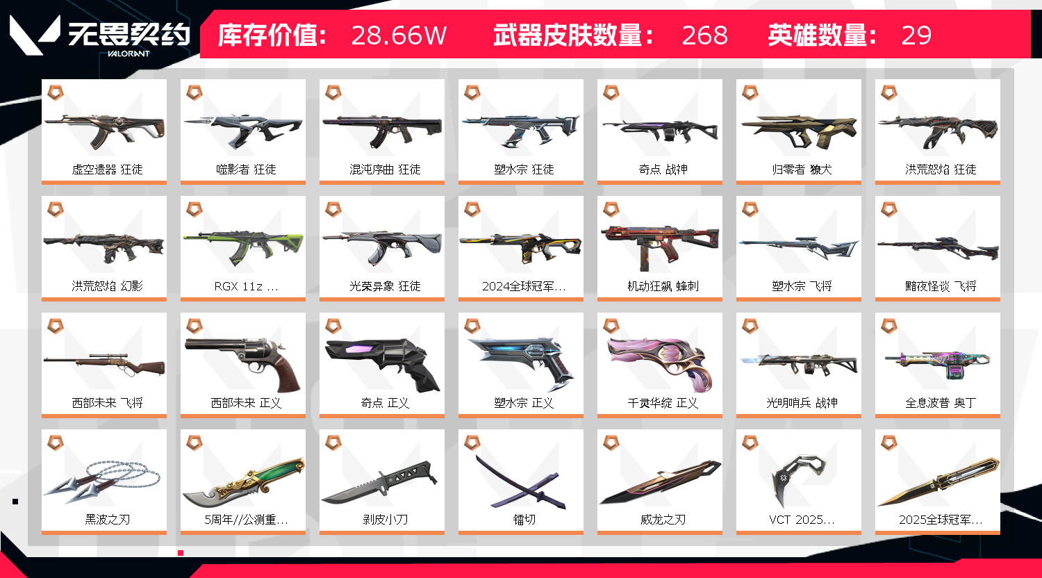 • 皮肤资产价值: 286640